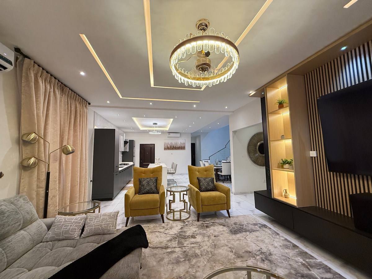 Welcome to your private resort in Accra. Nubian Villa offers a private infinity pool, a 36-jet hot tub with its own bar and hanging chairs, a fully equipped gym, and curated chef services — all within a secure, luxury 4-bedroom residence. Designed for families, executives, and discerning travelers, the villa combines privacy, comfort, and seamless service — including airport pickup and a standby silent generator for uninterrupted power.
