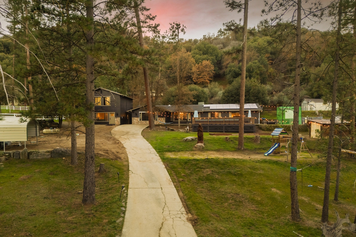Take a breath and relax on a private mountainside in Giant Sequoia National Monument. Use a it as a basecamp to hike the Giants, mountain bike, ride a natural waterslide or never leave the property. Over 5 private acres with it's own creek and many trails. The bright and open space is decorated in designer furniture and has a well stocked kitchen, home theater, hot tub, sauna and billards. Desks and consisent Starlink WiFi make it a perfect remote work destination.
