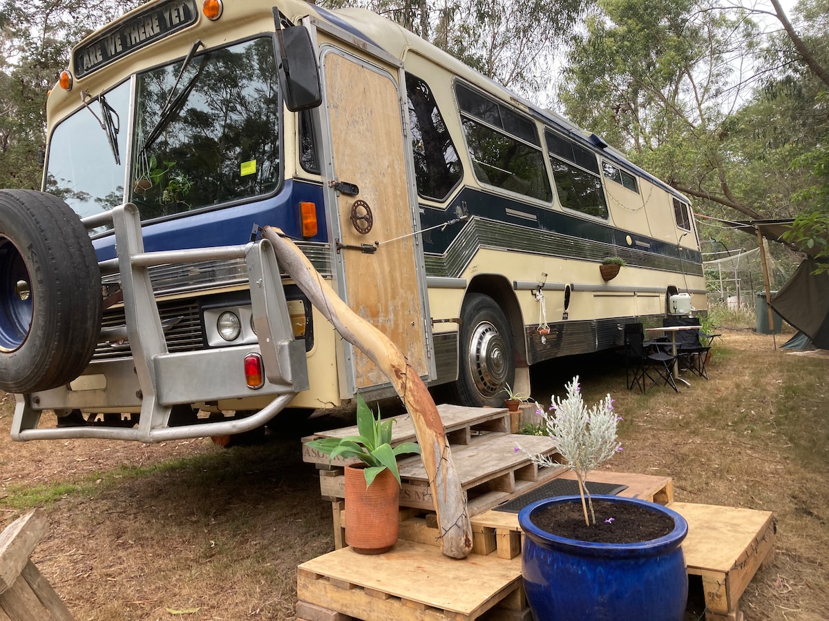Welcome to our new Retired Bus In The Womabarra's. This rustic Bus is suited to people who like to go back to basics and love the camping bush vibes. It is set in the sub-tropical basic garden of my home in Wombarra. Nestled between the Illawarra Escarpment and beach, surrounded by nature, peaceful bird singing surroundings. She comfortably accommodates 6 guests. The location is 2 minutes walk from the station and 7 minutes walk to stunning, unspoiled, surf beaches and rock pools.