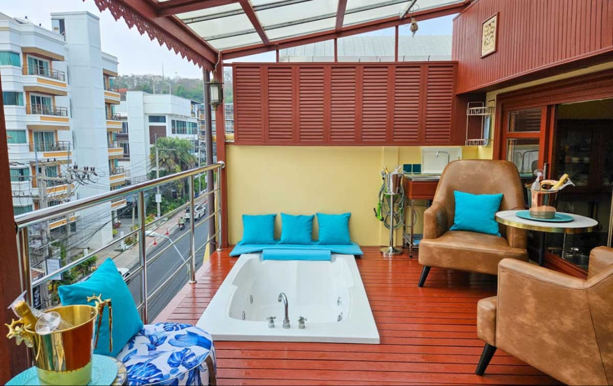 芭提雅途优别墅酒店 市中心泳池别墅里的公寓套房,景观阳台带按摩浴缸5号房