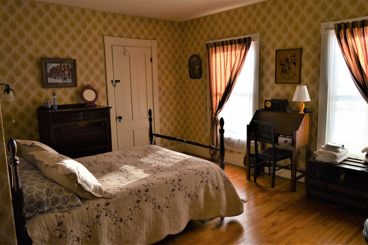 We have four rooms in total, two of which are ensuite including shower and two rooms that have shared sparkling clean washrooms w/shower. Our charming heritage home is a comfortable place to stay with interesting art-filled rooms. All of our rooms have designer cotton jersey bedding (Now that's soft!). We are located in the heart of the Mansonville right next to the historic Round Barn.