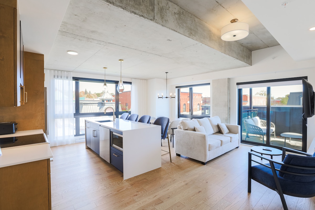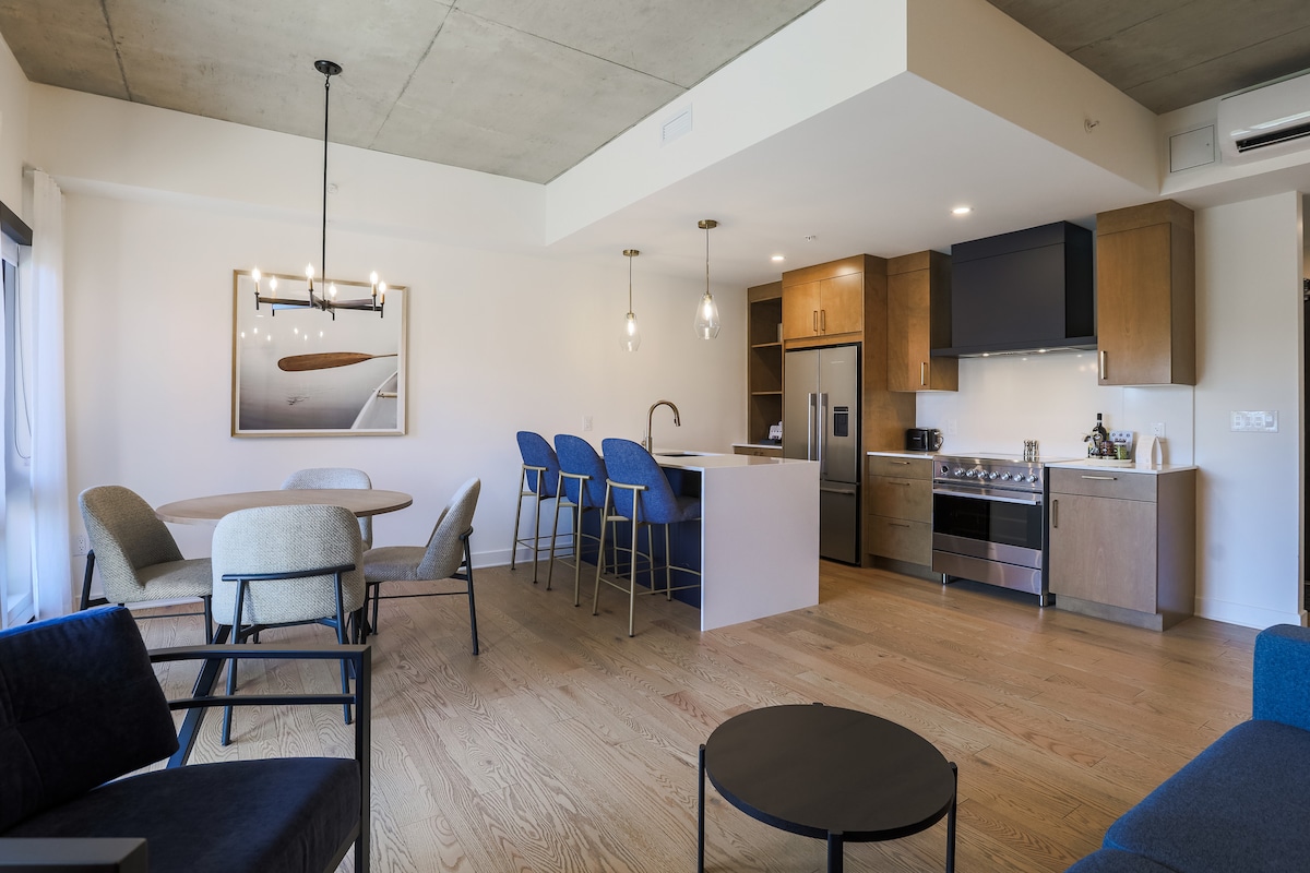 Véritable pièce maîtresse de l’hôtel, ce penthouse exclusif propose plusieurs chambres, de vastes espaces de vie et des vues panoramiques spectaculaires sur le lac Memphrémagog. Son mobilier raffiné et ses volumes impressionnants offrent une expérience haut de gamme unique à Magog. Les chiens NE sont PAS acceptés dans cette suite. Les chiens sont permis seulement dans les suites du 1er et 2e étages. Vous serez à proximité immédiate des restaurants, cafés et activités du centre-ville.