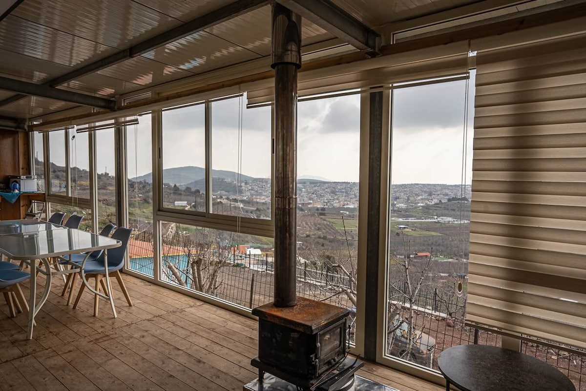 Tucked away in the peaceful Golan Heights, this beautiful home is perfect for a relaxing getaway with loved ones. Enjoy a private Jacuzzi, glass sauna, cozy fire pit, and a 4 burner gas BBQ for meals under the stars. Inside, there’s an open plan living space with an indoor fireplace, high wood ceilings, natural light, and a fully equipped kitchen. With fast Wi-Fi, private parking, and peaceful nature all around, it’s the perfect spot to unwind, connect, and enjoy quality time in comfort.