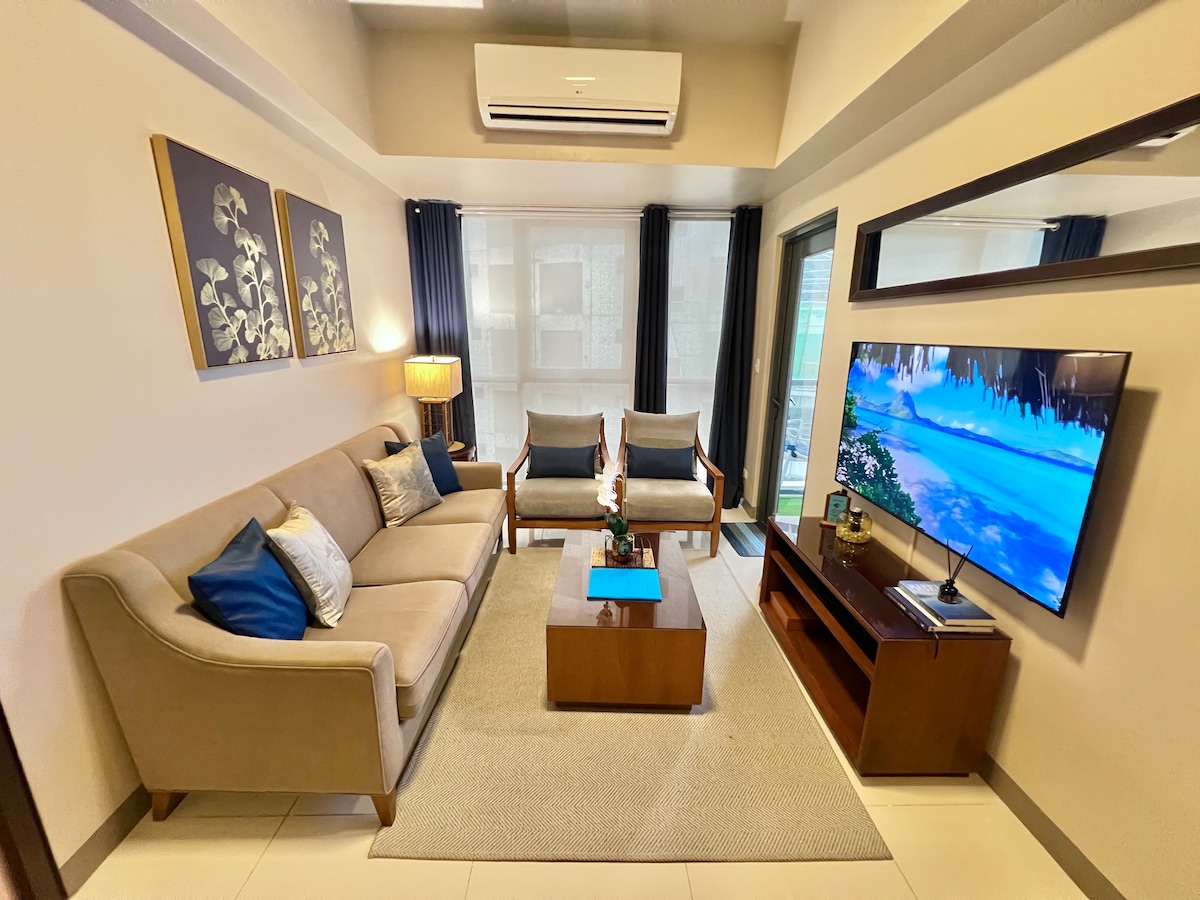 Relax in this entirely cozy, modern and vibrant 1BR condo unit that is conveniently located in ONE MANCHESTER PLACE, Mactan Newtown, Lapu-lapu City. Where it is close to 5 star resorts, restaurants, coffee shops, and supermarket. - 10-15 min drive away from Mactan Airport -Smart Lock Access - 50 Mbps WIFI - Free Netflix - Fully Equipped kitchen (IMPORTANT NOTICE: Kindly review the property descriptions below before making your reservation.)