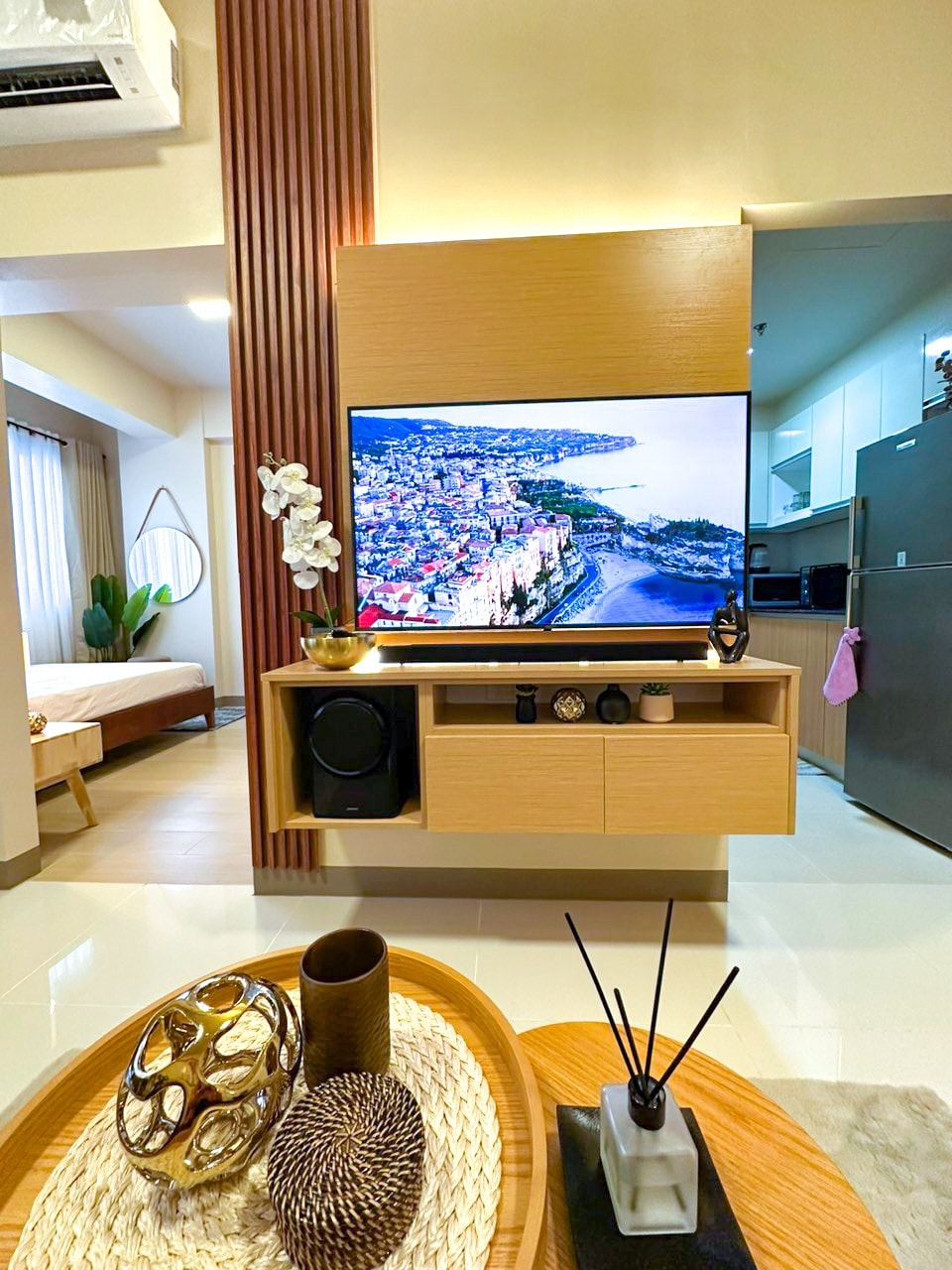 Monochromatic tones and plush textures welcome you into this beautifully designed 37 sqm studio in Tambuli Seaside Living. Enjoy a queen-size bed, a cozy sofa bed, fast Wi-Fi, and a fully equipped kitchen, plus a private balcony overlooking the Hilutungan Channel. Free access to the condo’s exclusive pools completes this relaxed, resort-style escape just minutes from Mactan Airport.