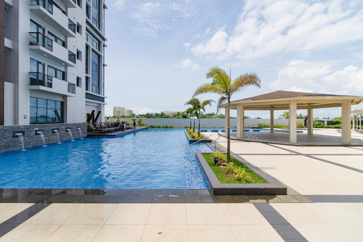 Executive studio for 2 people 15 minutes to Airport Quality Queen Bed Free Drinking Water-Japanese Dispenser Wi-Fi/SmartTV/Free Netflix Lockable Safe Smart Lock access Hot Shower, Bidet Fully Equipped Kitchen Balcony,Seaviews&Breezes Gordon Ramsay/Japan/Korean Restaurants,Concierge,Pool,24hrSecurity Supermarket,7/11,Bakery,Starbucks,McDonald’s,Pharmacy,ATMs 400m walk to Beach, Beach Passes Php350/person daily NOTE:Up to 16 hr daily Construction/Noise is next door. Discounted daily rate is 30%