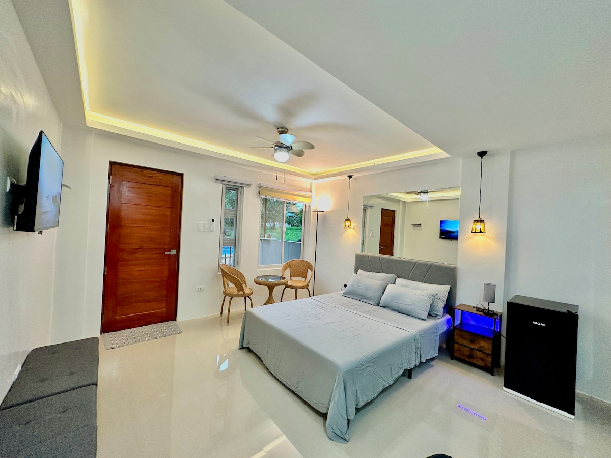 This comfortable and lovely 1BR Suite is your home away from home. Located on the high floor where you will find peace and tranquility, watching the sunrise and sunset in your own private patio. The patio has a view of the sea and lush greenery. All furnitures were meticulously picked and thoughtfully arranged to provide a homey feeling to all our guests. It is also equipped with high-speed internet, 55" smart TV in the living room, 43" in the bedroom and fully equipped kitchen.