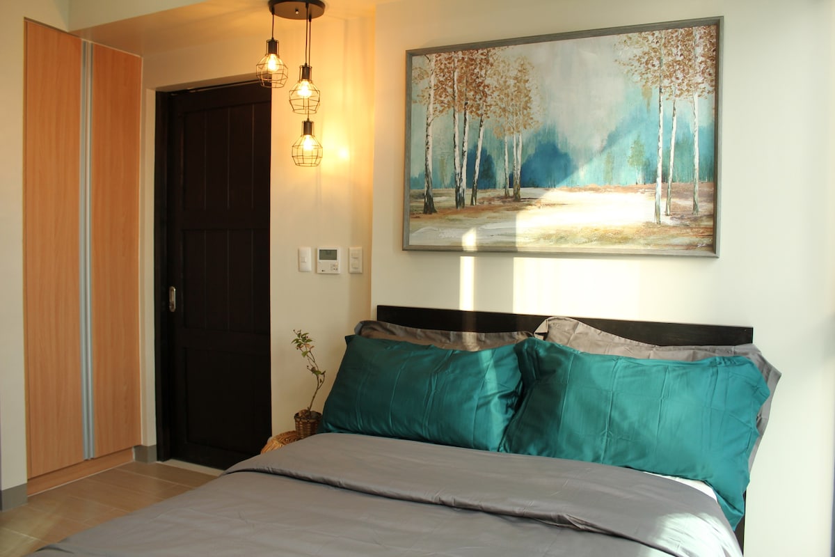 You'll love this 1-bedroom vacation rental centrally located in Mactan Newtown, Lapu lapu City. Fully equipped with Fast Wifi, Smart TV w/ Netflix, comfy bed, linens,towels, kitchen dining utensils. Plus, FREE access to the gym and pool. Also just walking distance to convenience stores, coffee shops like Starbucks and civit, restaurants,the historical Mactan Shrine and More!