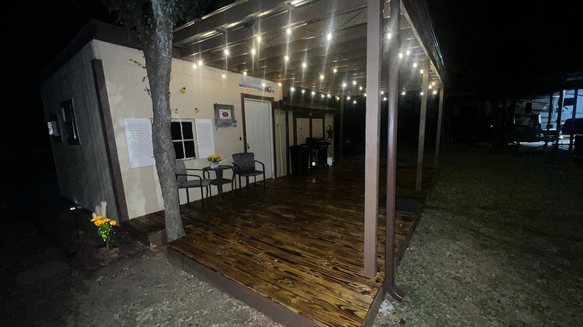 Relax and enjoy the lakefront at Lake Leon. It's peaceful, quite, secluded, & absolutely beautiful. The 2-acre fenced property is made up of an RV, a Tiny Home, and a Barndominium. Tons of shared amenities including a covered lighted dock, gazebo, grills, a burn pit patio, canoe and even E-bikes. And if you like games, we have you covered indoor & outdoor with hatchet throwing, backyard golf, horse shoes & more. Come enjoy the super clean Super-Host 5-Star Barndominium at The Cove.
