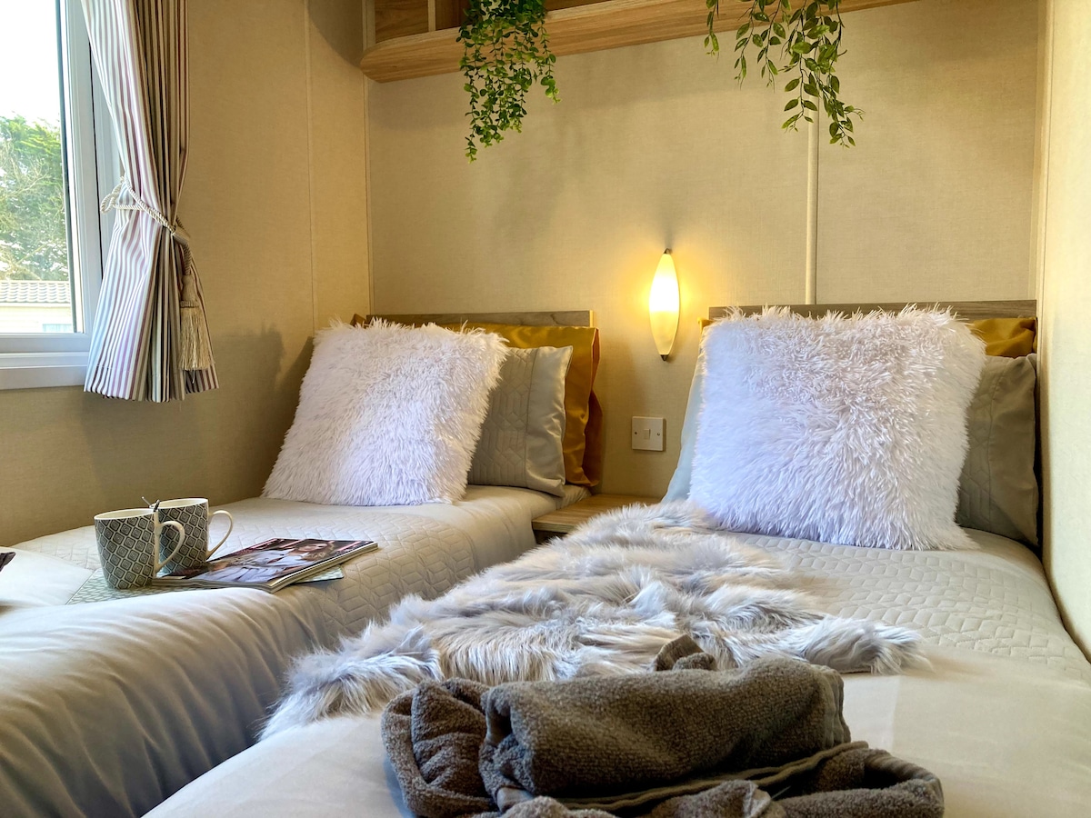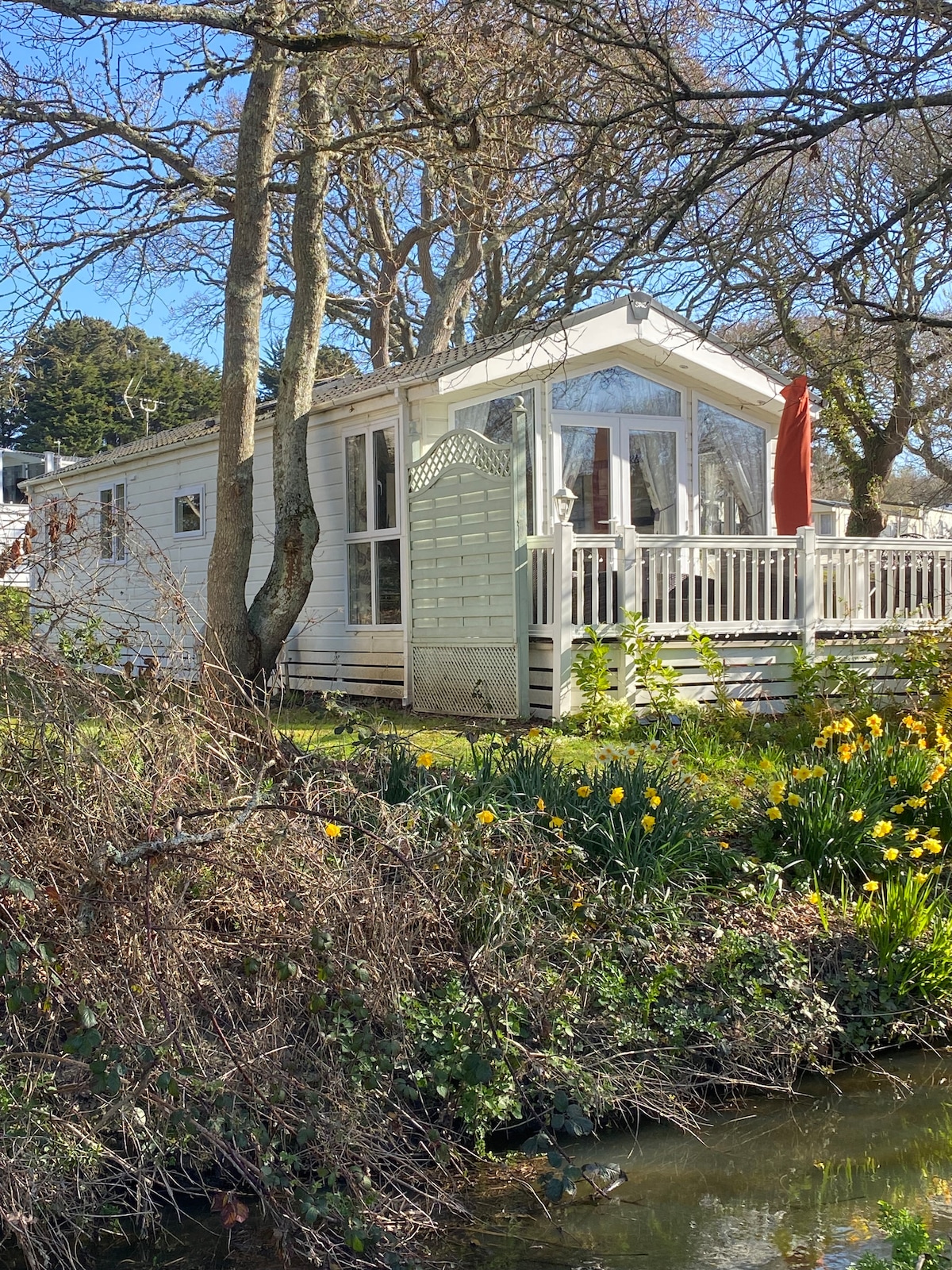 Upstairs there is one double bedroom with a double bed and ensuite shower room, and two additional double bedrooms with twin beds in each. The large family bathroom has his and hers sinks plus a luxurious roll-top bath where you can relax and enjoy the views over the creek.
