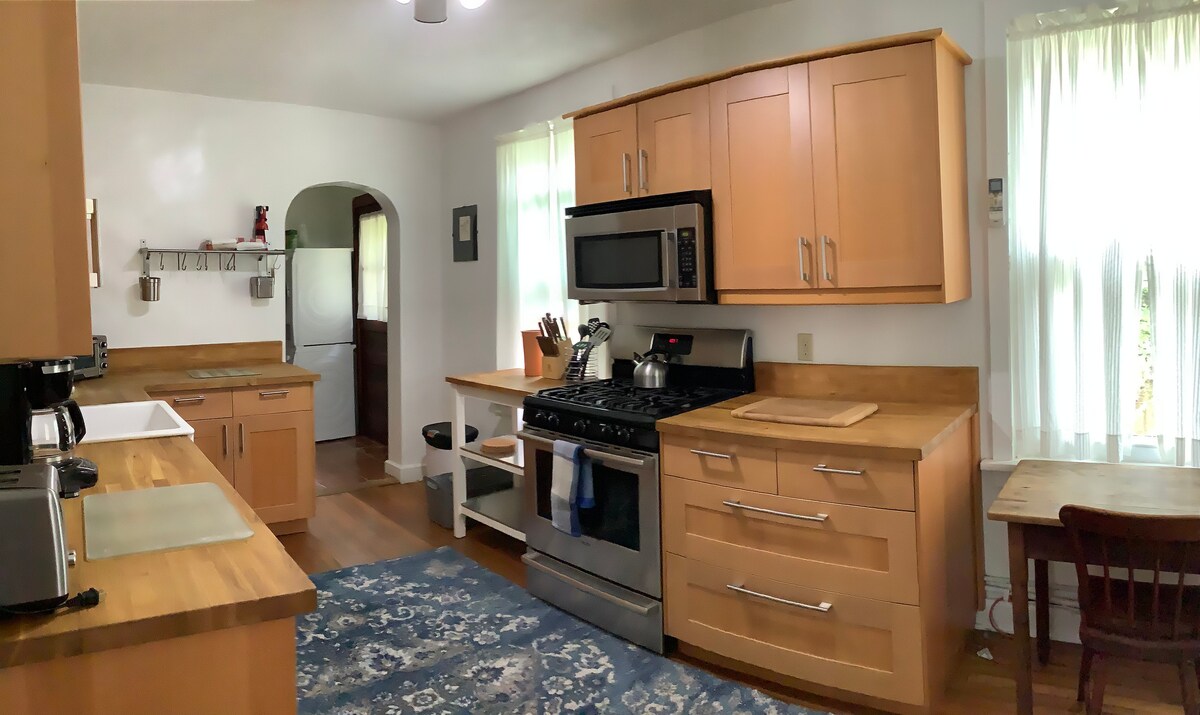 This house is close to, public transport, the airport, the historic city center, and parks. Designed for discerning travelers; ideal for couples, singles,and families. Washer, dryer, 2 TVs, full kitchen, DVDs, WiFi, microwave, coffee percolator, 1/2 block to bus stop, private drive for off-street parking. Two Queen size beds with high profile mattresses, quality sheets and lots of pillows. Introducing American Blossom bed sheets; 100 percent cotton.