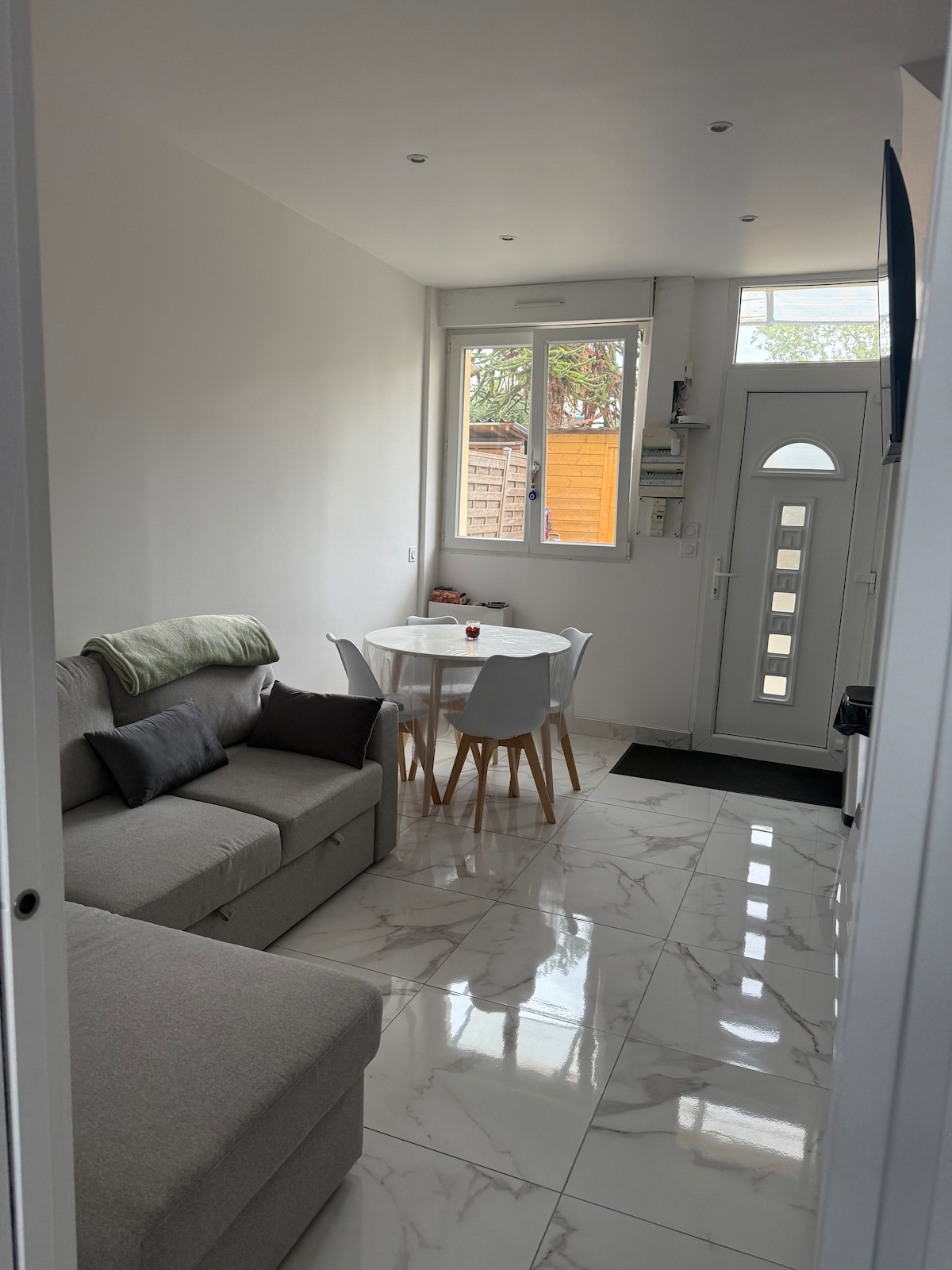 Quartier pavillonnaire très recherché, à 6 minutes à pied du train et du RER direct Paris à 24 minutes. HYPERMARCHÉ À 10 minutes à pied Logement de 18m2 NEUF Draps, serviettes fournis. À disposition : sel, poivre, huile, vinaigre, sucre, thé, café (et filtres), savon, shampoing et lave-vaisselle, Wifi, FIBRE, TV Un petit nid pour visiter Paris !!! Arrivée possible en totale autonomie Attention aux très grands : plafond à 1m90...