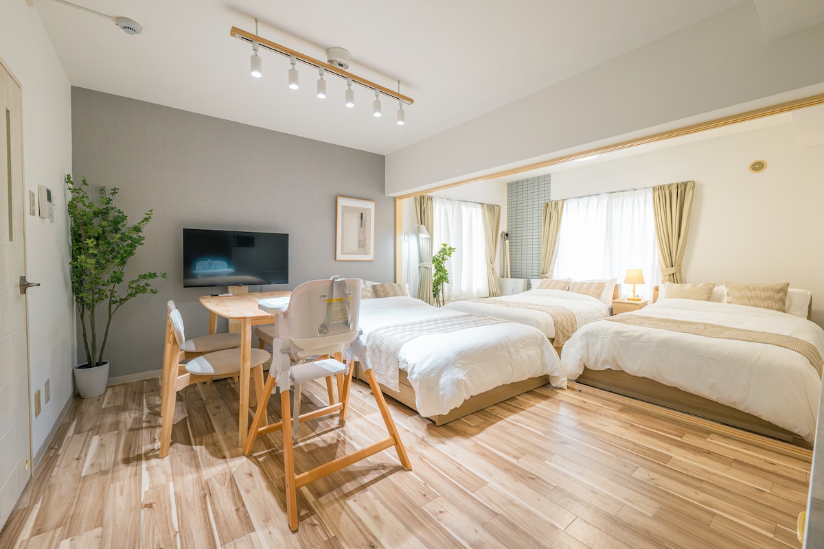 步行5分钟到达薄井,7年新建的公寓,在Sealy床上舒适入睡