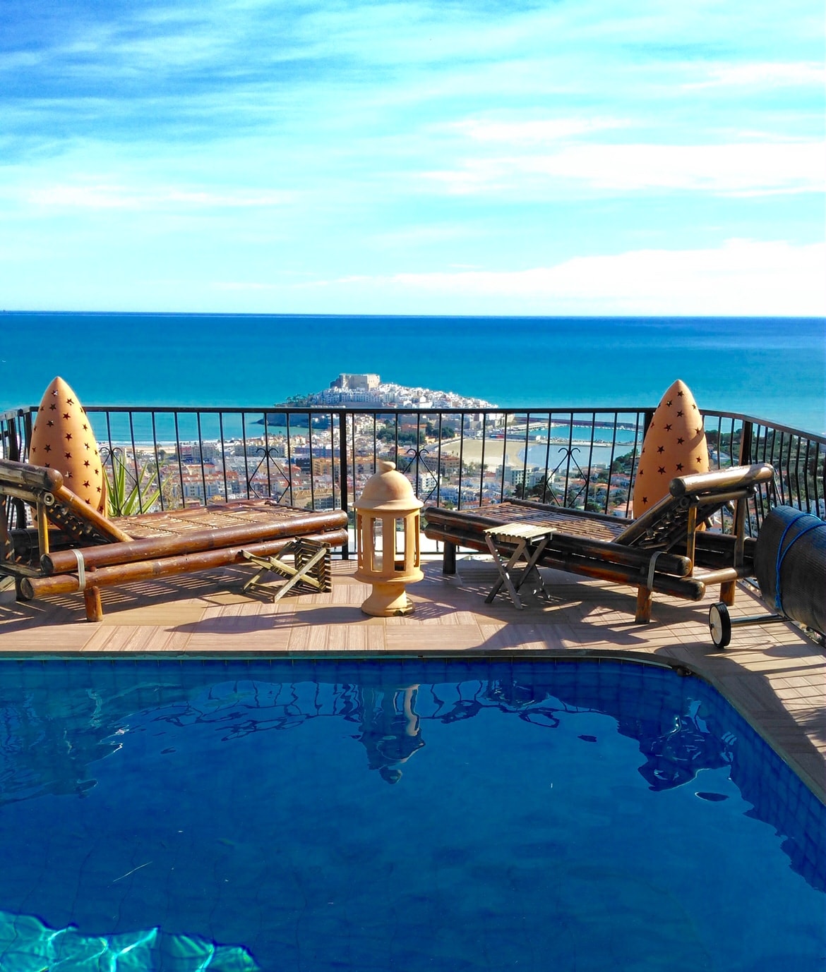 "Punta Xata" in its privileged position right on the seafront, has incredible sea views. The larger terrace is ideal for sunbathing, eating outside and enjoying the sunset. The smaller one is perfect for breakfast and watching the sunrise. The main bedroom is very romantic with a round bath for sharing and sea views. There is a quiet communal area, with a pool. Ideal for couples and families. Easy access to beaches in 2 minutes and the promenade in 15. Wi-Fi and private parking.