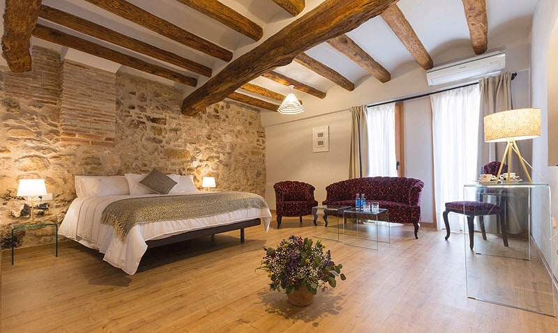 Alojamiento en un edificio antiguo convento del siglo XVII con las paredes de piedra y multitud de detalles de su origen con cafeteria en la planta baja y muy confortable con su chimenea de pelet y su cama de 180 por 2metros y un amplio baño comunicado con un atraco de piedra