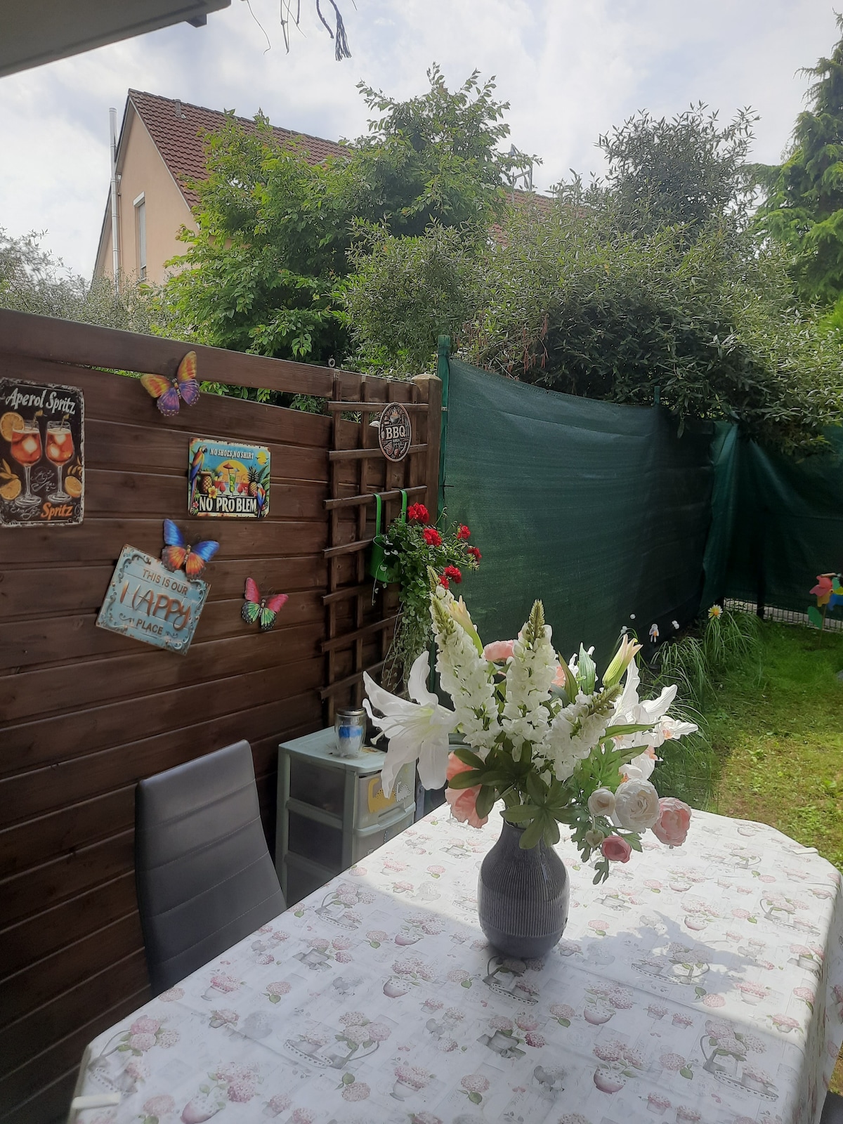 Ground floor of a house (57 m2): - living room, sleeping room, kitchen, bathroom, separate entrance, garden - fully equipped Location: - near Autobahn A92, 500 m from Exit 3 - by car: to Airport 15 min, to Munich Messe 25 min, to train S-Bahn 5 min (btw. we have a wallbox for fast charging - 30 Cent/kwh) - by public transport: S-Bahn S1 to Munich center 30 min, to Airport 25 min. - Walking distance to S-Bahn train station 20 min or 10 min with our bicycles.
