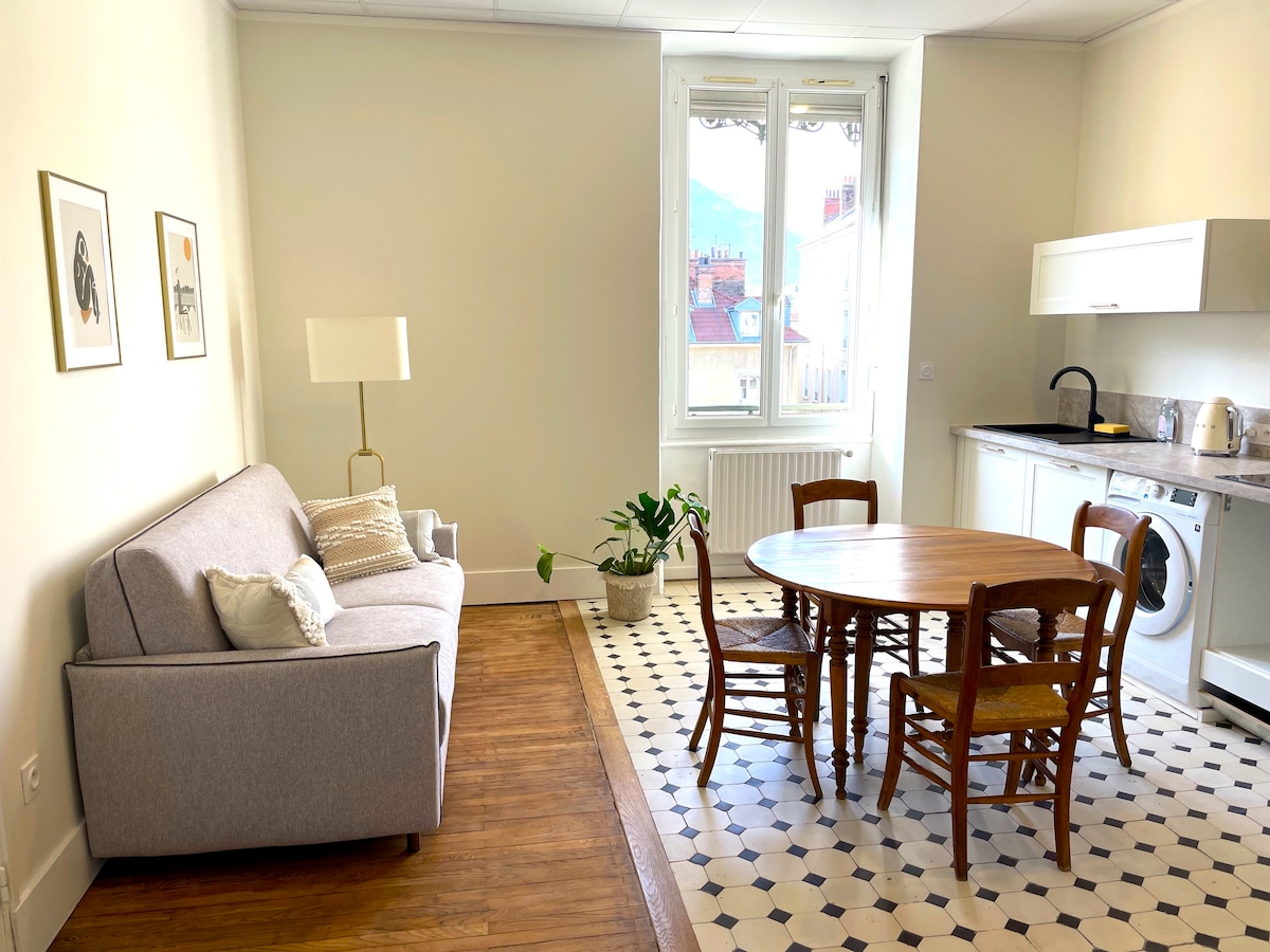 Découvrez cet appartement de 32m2 dans un quartier calme de Grenoble. Residence soignée et très calme au rez de chaussée. Tout confort avec de nombreux rangements. Nouveau: Nous avons installé la fibre ! Ligne de bus direct centre ville avec arrêt à côté de la résidence et parking privé extérieur. Afin d'éliminer tout risque, entre chaque réservation, l'appartement est désinfecté, draps, serviettes et autres linges sont lavés au minimum à 60 degrés. Il est interdit de fumer dans le logement