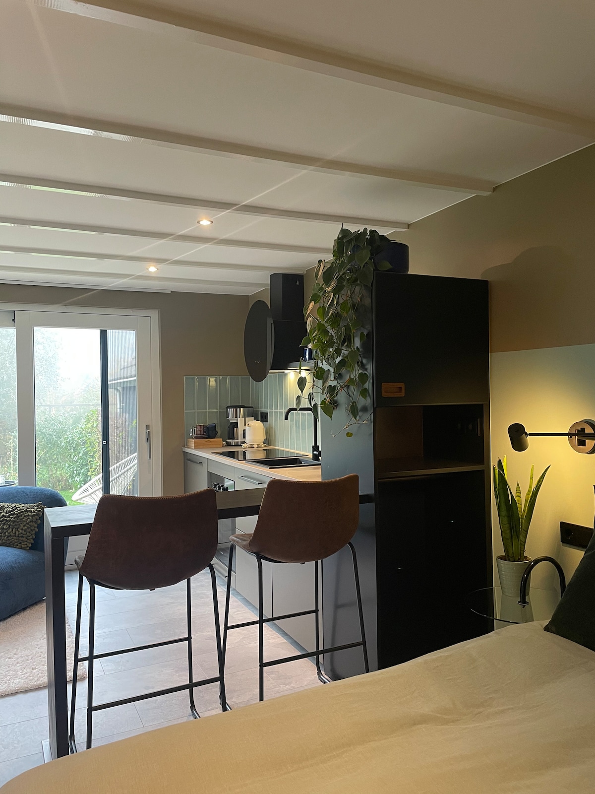 Op een zeer gunstige locatie t.o.v de mooie bossen van het Oranjewoud en het centrum van Heerenveen ligt dit schattige vakantieverblijfje met eigen zonneterras en vrij uitzicht op de tuin. Deze voormalige garage is recentelijk volledig omgetoverd tot een comfortabele en knusse studio. Je kunt hier in de buurt heerlijk fietsen en wandelen en het Friese merengebied ligt op 20 minuten rijden hier vandaan. Verder biedt het centrum van Heerenveen tal van gezellige terrasjes en barretjes.