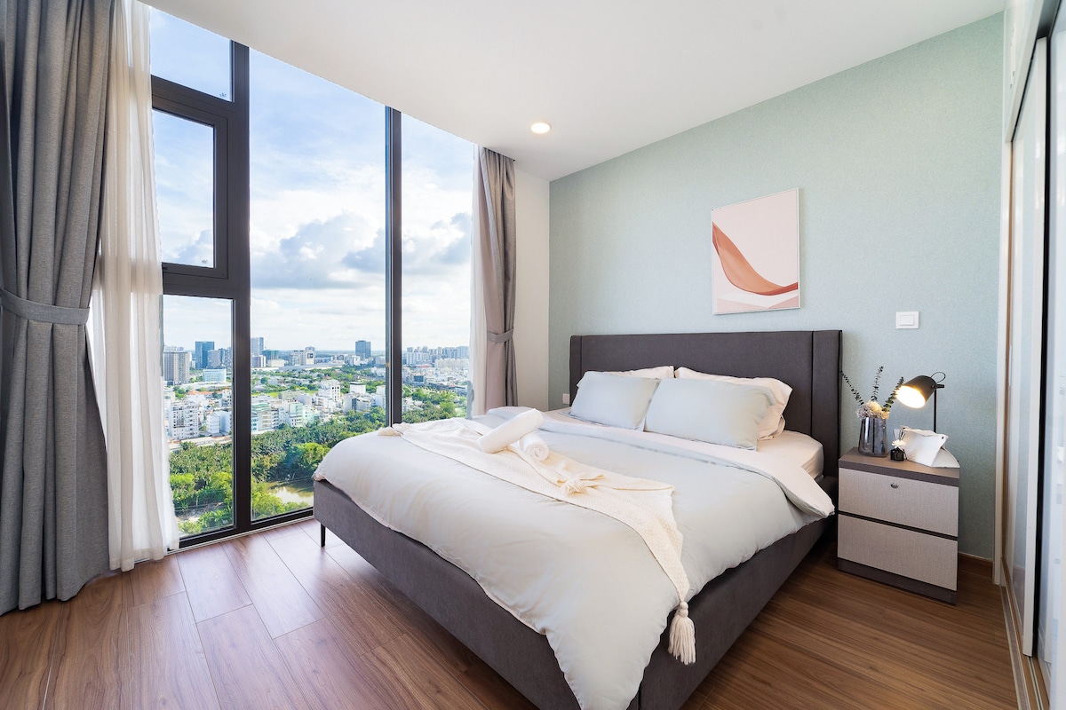 - BRAND NEW high-floor apartment 2 bedrooms + 2 baths with Panoramic view - Special promotion on long-term stays - Fully-equipped meeting all your needs for long-term stays - Free cleaning service - 5 days/once - Free access to Gym, Swimming pool, Park, Jogging trail, Kid playground & Community room - Convenience stores & Coffee shops located at 1st floor - 10-minute drive to Phu My Hung, Crescent Mall, Lotte mart & Vivo City - cinema, restaurant, supermarket - 15-minute drive to District 1