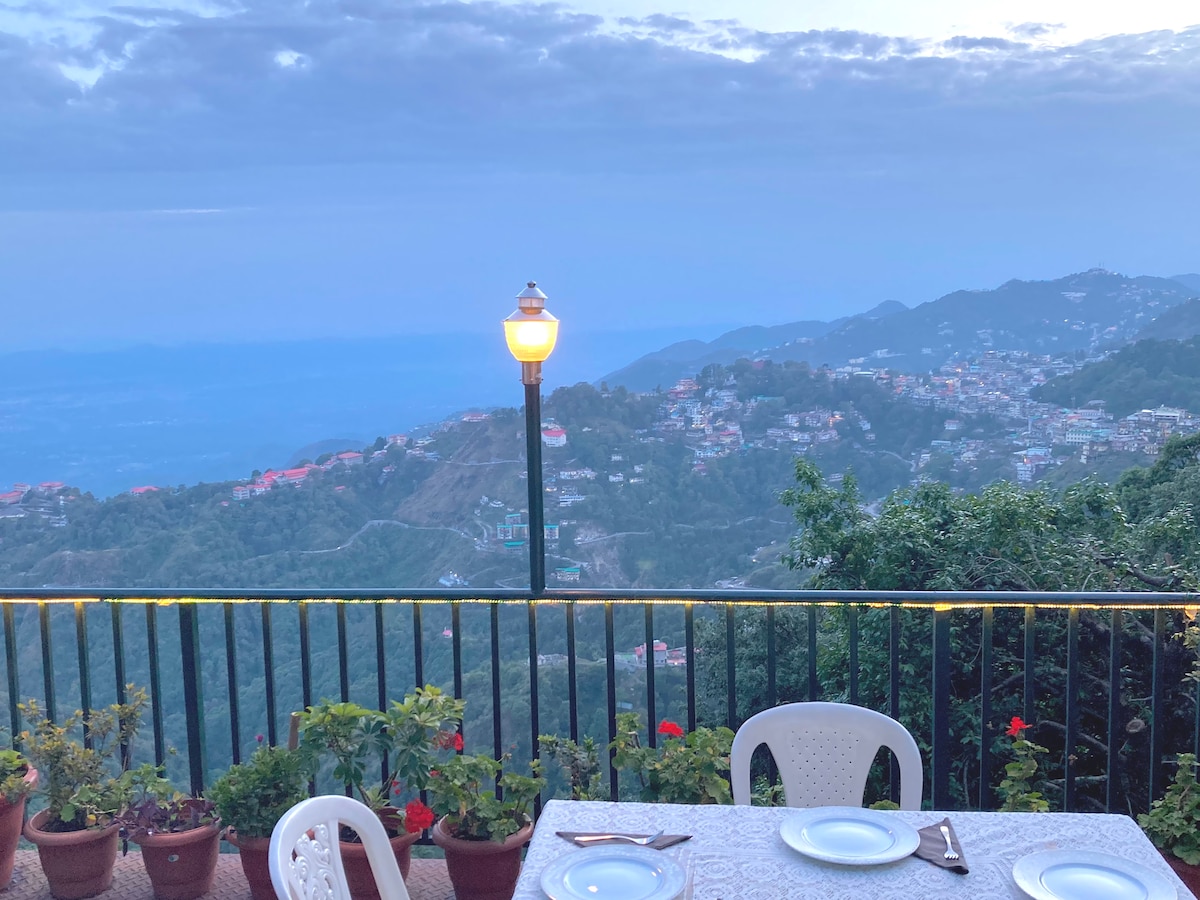 "Fang's Den" is a fully functional rental unit with a private deck and entry. Situated in the heart of Landour. It offers unobstructed, panoramic views of the stunning Winterline and the Dehradun valley. We offer wifi, 24x7 power back up, breakfast in the package. Guests will have to walk 15 steps to the property.