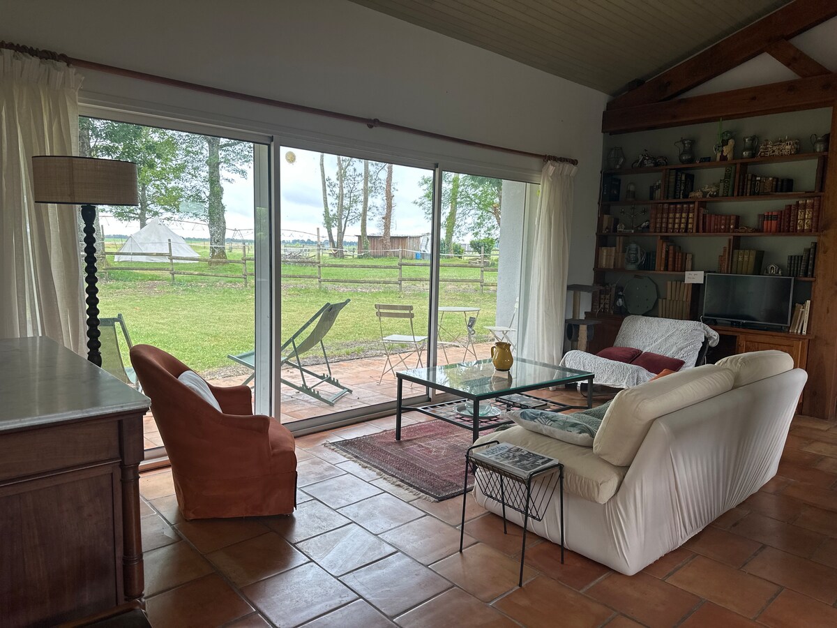 A PROXIMITÉ DE MONT-DE-MARSAN LOCATION LONGUE DURÉE POSSIBLE Réductions selon durée Au carrefour des landes, du Gers, des Pyrénées , plages landaises et Pays Basque Gite charme *** de 48m2 , de plein pied, dans ancienne bergerie , dans quartier rural , calme et non isolé , sur 7000 m2 de terrain. Avec son jardin clôturé Promenades à pieds et à vélos vers étangs en sortant du Gîte Carrefours contacts 8 km , boulangerie et bar , épicerie carrefour 2km