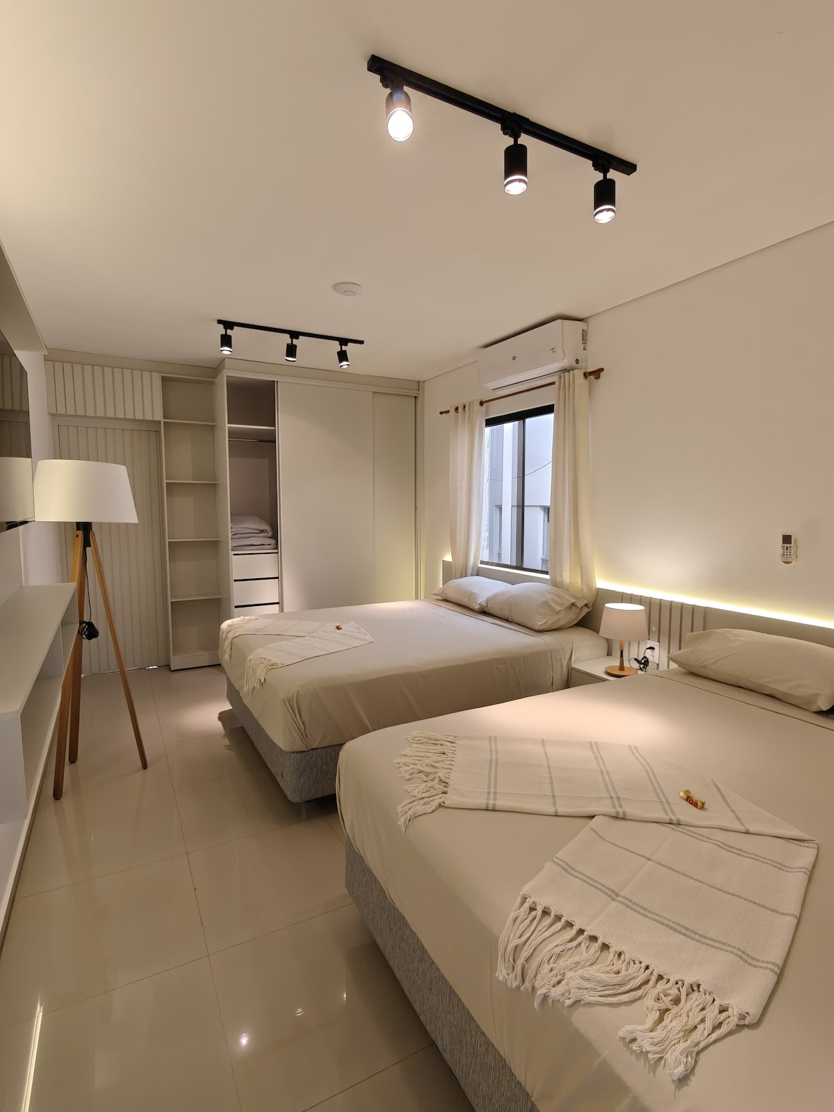 Apartamento novíssimo, pensado e decorado com muito carinho por mim, desde a escolha dos móveis ao quadro que decora a sala. Um local de aconchego e descanso, para casais, famílias, ou viajantes solo. Localizado no centro de foz, ao lado de um mercado e uma farmácia, com cafés, restaurantes, academias e bares a uma quadra de distância. Meu apt tem todas as comodidades necessárias para tornar sua hospedagem memorável em Foz do Iguaçu!