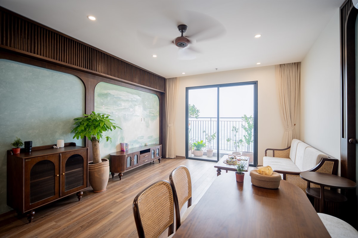 Tucked away in Hanoi’s French Quarter, this 82m² apartment offers an elegant blend of greenery and minimalist design. Inspired by Japanese aesthetics, the space flows gently from room to room, filled with natural light, soft textures, and calming tones. A spacious balcony with lush plants invites slow mornings and peaceful evenings. Every detail is intentional — a quiet retreat in the city.
