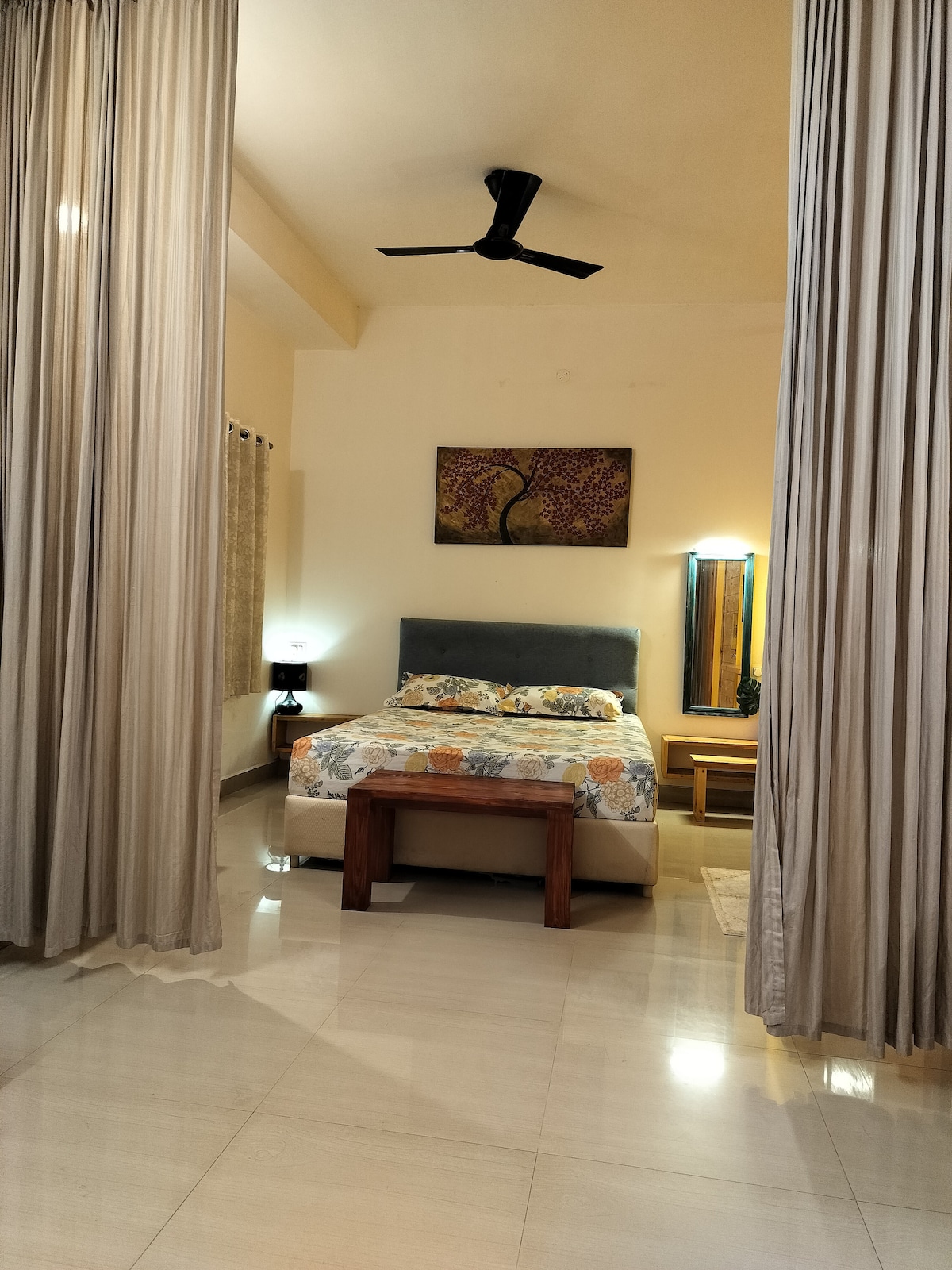 The house is located in a safe area and away from the hustle & bustle of the city and nestled in the sub urbs of the IT highway . It has ample windows and 2 balconies. It is very spacious and very calming . Lots of sunlight and great air flow. All necessary amenities are available including smart TV , fridge, washing machine, microwave oven, high speed wifi, CCTV etc. You will feel like its a home away from home.