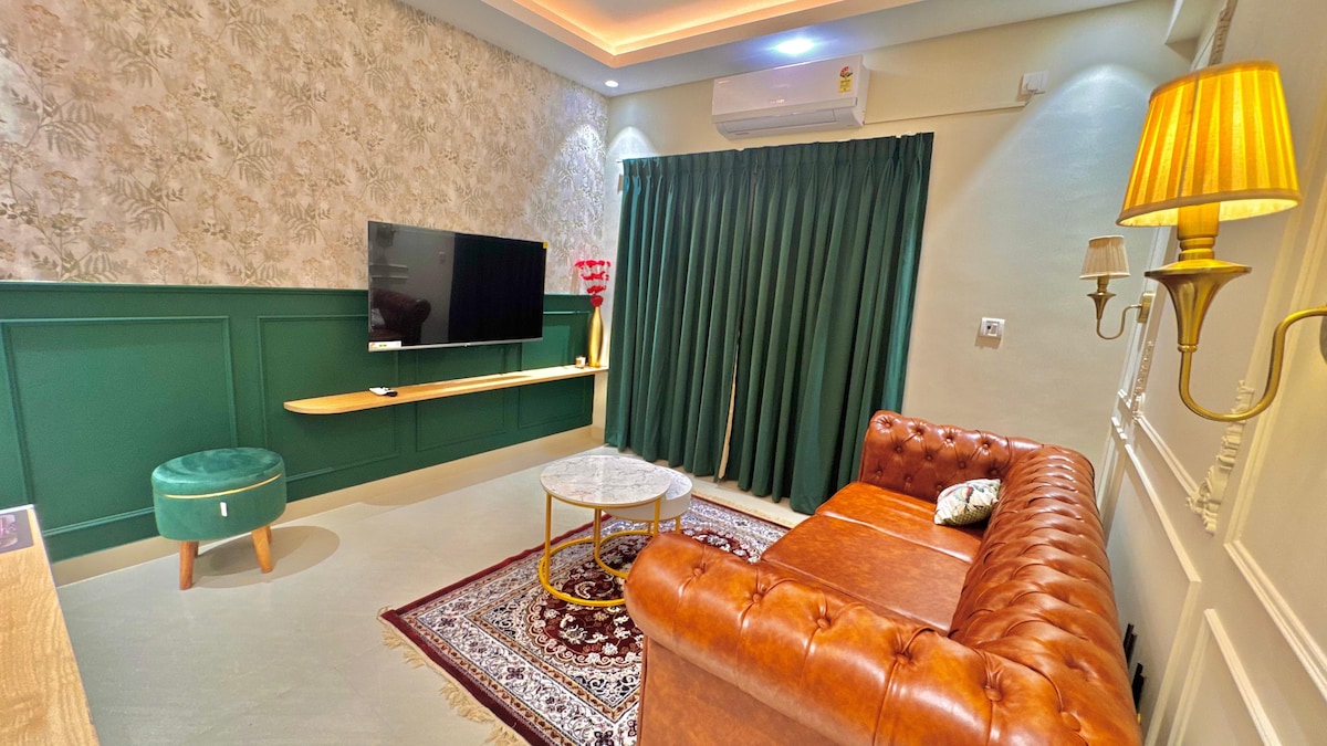 Executive Studio @ SIPCOT OMR. Experience smart luxury near Marina Mall. This AC studio features a 55" 4K TV (Netflix) and ambient lighting for cinema vibes. The plush lounge transforms into a premium bed for deep sleep. Work-ready with High-Speed WiFi. Includes Washer/Dryer, fully stocked kitchenette & huge Wardrobes. Hotel-grade hygiene with the bonus of a Kitchen & Washer/Dryer. Perfect for executives, couples. Designed for long stays and short stays. Seamless Self Check-in.