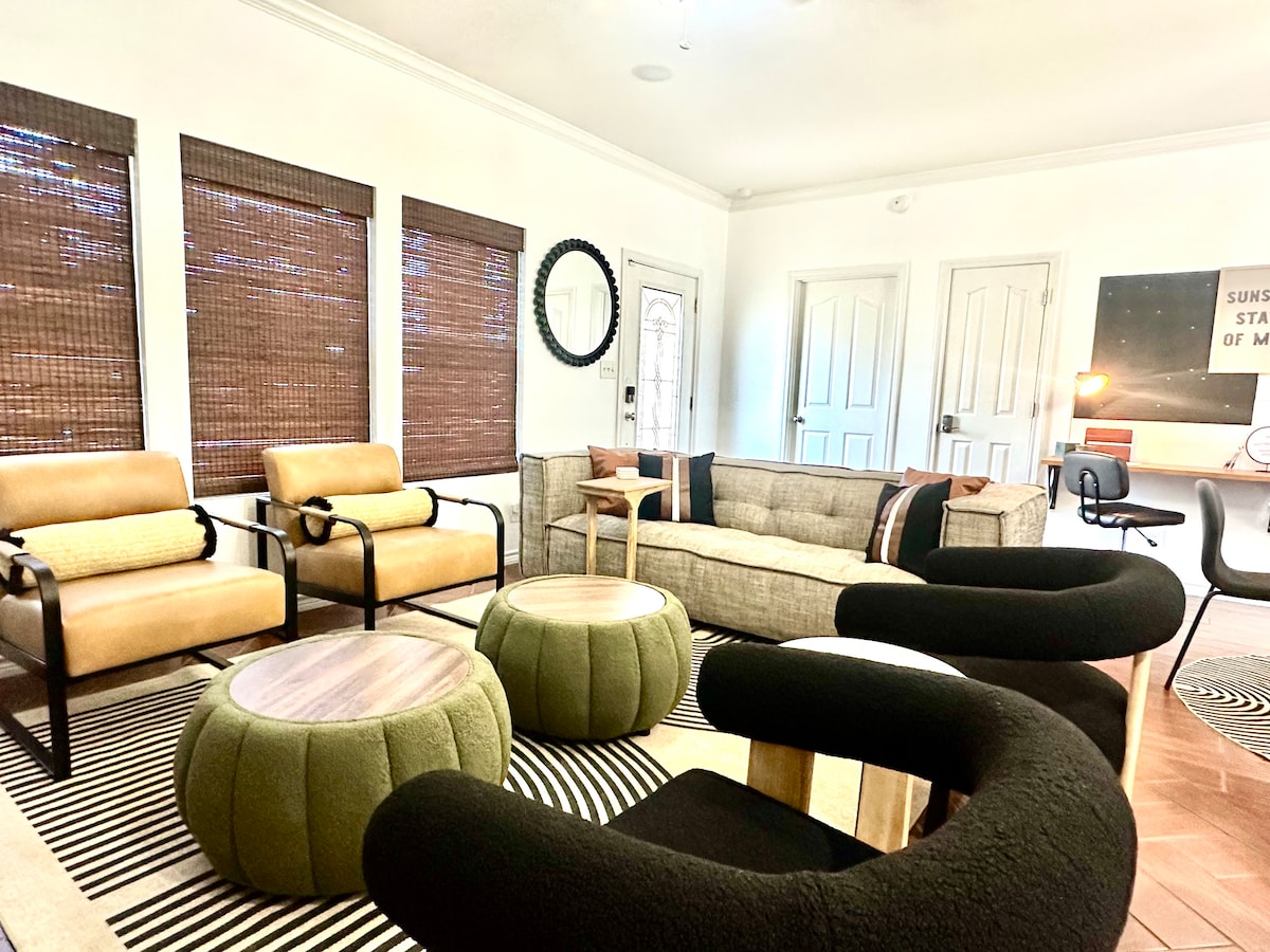 Welcome to this spacious and serene townhome, styled in a mid-century modern aesthetic. It is centrally located with numerous restaurants, shopping and grocery stores all within a 2 mile radius (7 minute drive). Whether here for a couples getaway or traveling for business, we are here to provide you with a relaxing and comfortable stay!