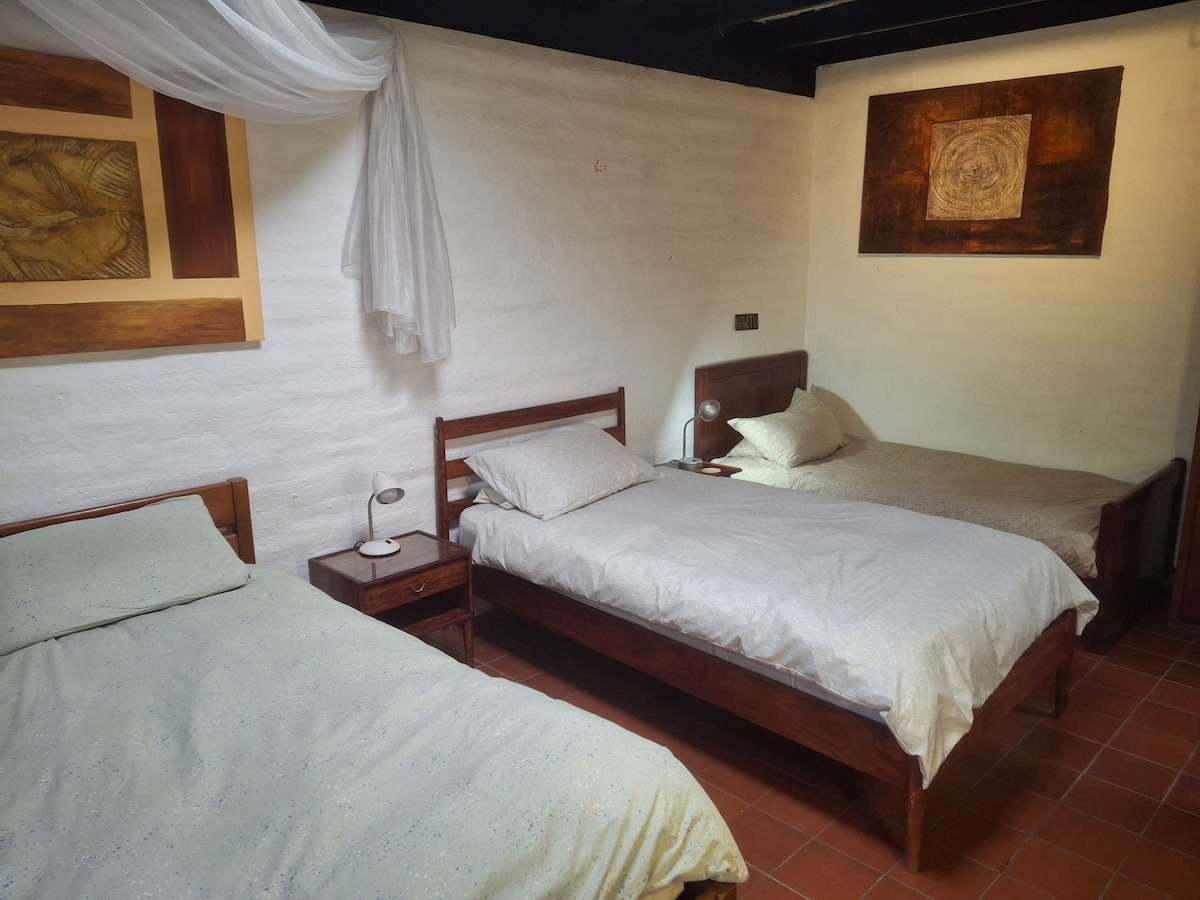 Breathe fresh mountain air from Panecillo hill while swaying in a hammock amidst flowers and hummingbirds. Objets d'art dot the lush garden, while inside, tiled floors and modern decor combined with reed ceilings give this heritage cottage an enchanting flair. A modern wood burning stove for cool evenings provides a cosy atmosfere, even so heating systems are not common in Quito. The design of the garden gives the chance to interact with other guests in our condo, or to stay private.