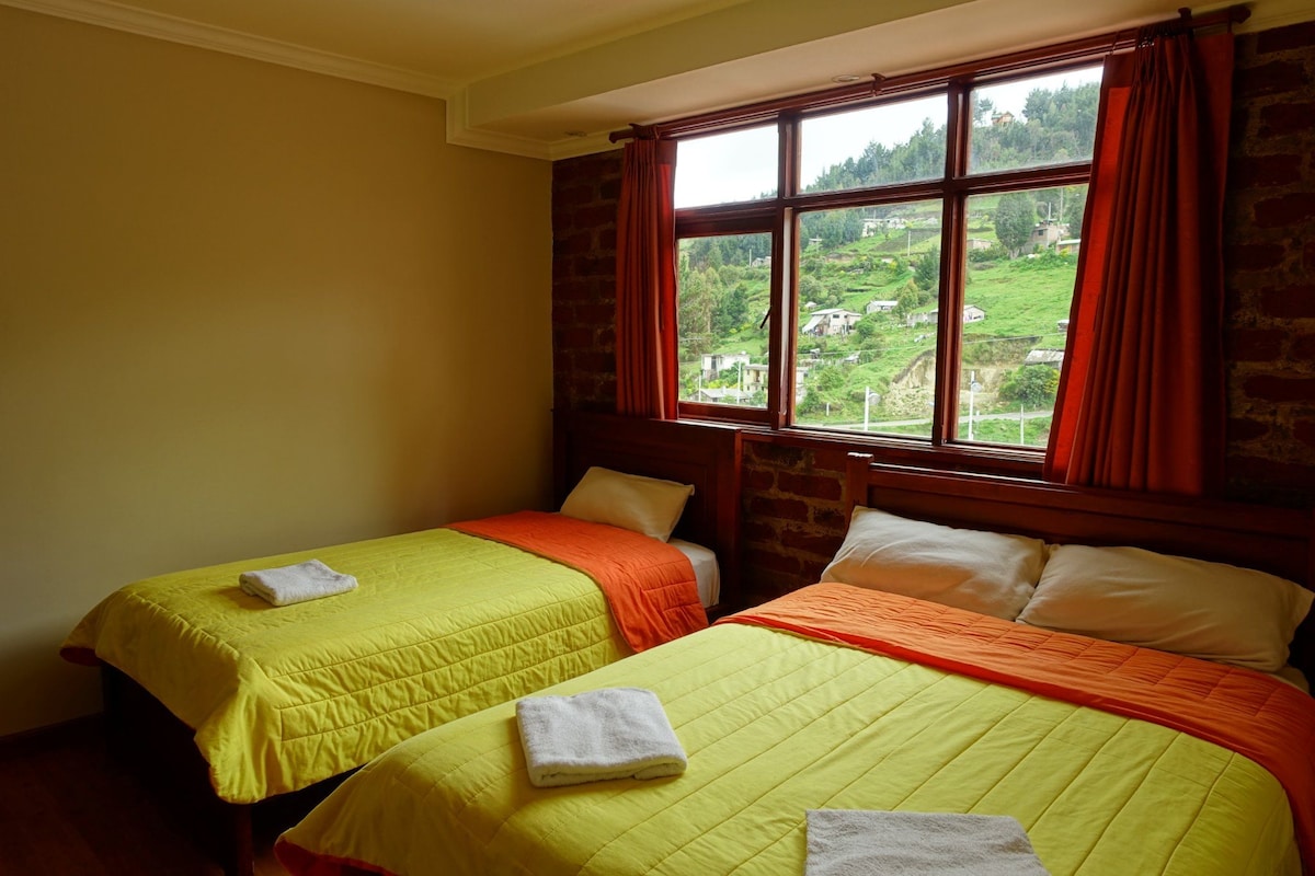 Incluye el desayuno de la casa, muy valorado por nuestros huéspedes. Casa independiente, confortable y segura, con vista al volcán Tungurahua y a cinco minutos del centro de la ciudad, muy cerca de restaurantes, cafeterías, parques y de toda la oferta turística que encuentras en Baños, un rincón andino rodeado de cascadas y montañas llenas de encanto y paisaje. Ideal para viajes de descanso, entretenimiento o trabajo en casa, en un entorno natural y único. Siempre será un gusto atenderles.