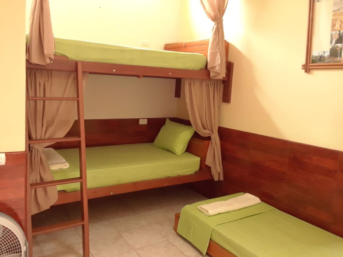 Cabaña ecológica con vista al mar, ubicada en segunda planta, ideal para familias pequeñas o amigos. Capacidad para 4 personas, equipada con camas dobles y de plaza y media. Disfruta de balcón panorámico, hamaca, WiFi de alta velocidad, baño privado, zona de barbacoa, ping-pong y parqueo privado. Perfecta para relajarte entre naturaleza y confort.