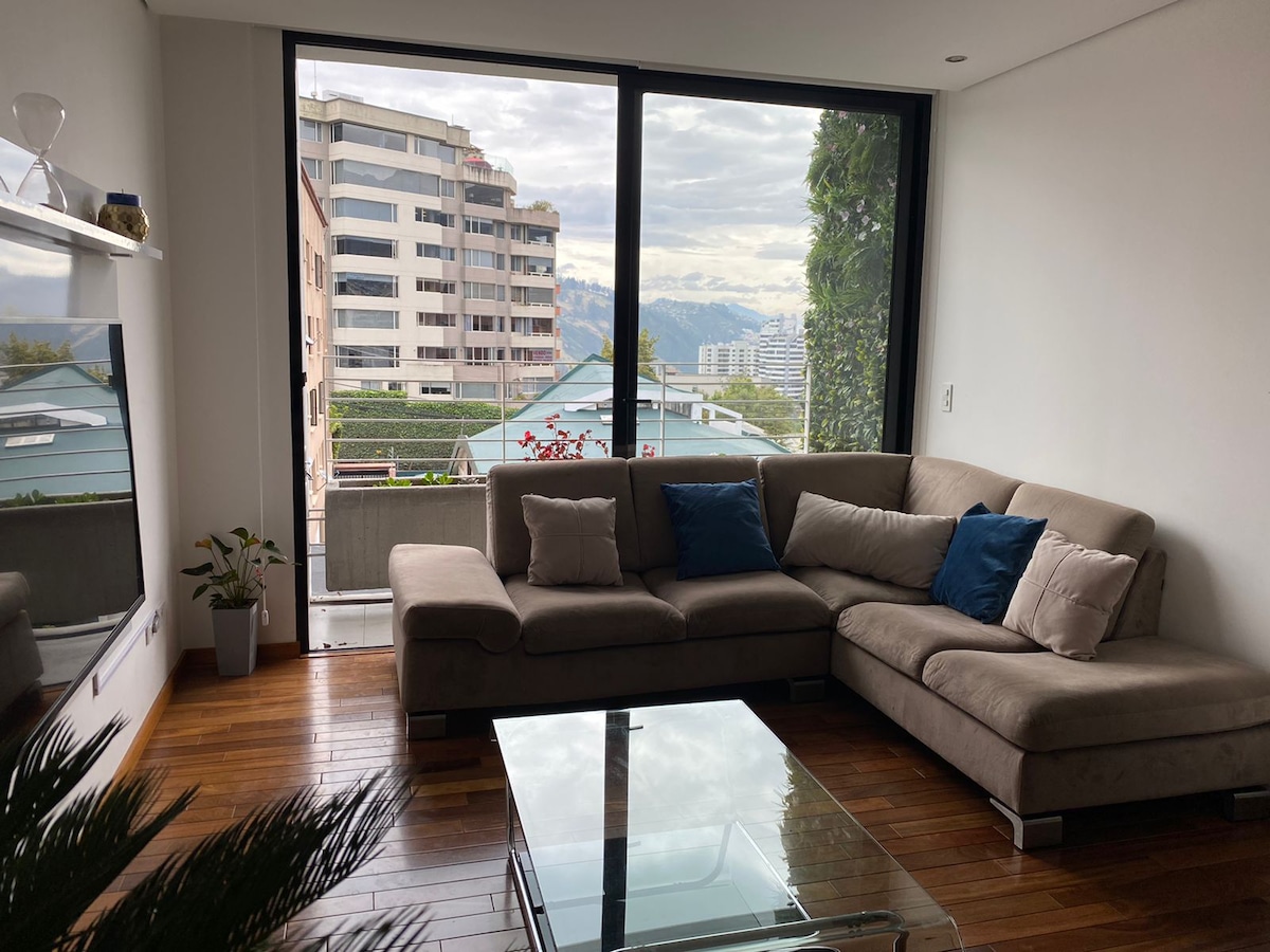 We are located 3 blocks from La Carolina Park and the same distance from Metropolitan Park. From the airport, the drive is 40 minutes. Downtown Quito is 5 km away (17 minutes), and the Middle of the World City is 26 km away (40 minutes). Free parking, 24-hour reception, and free Wi-Fi. In the apartment you will find: 2 bedrooms 2 bathrooms living room equipped kitchen, dining room, washer and dryer 2 flat-screen Smart TVs 24/7 security