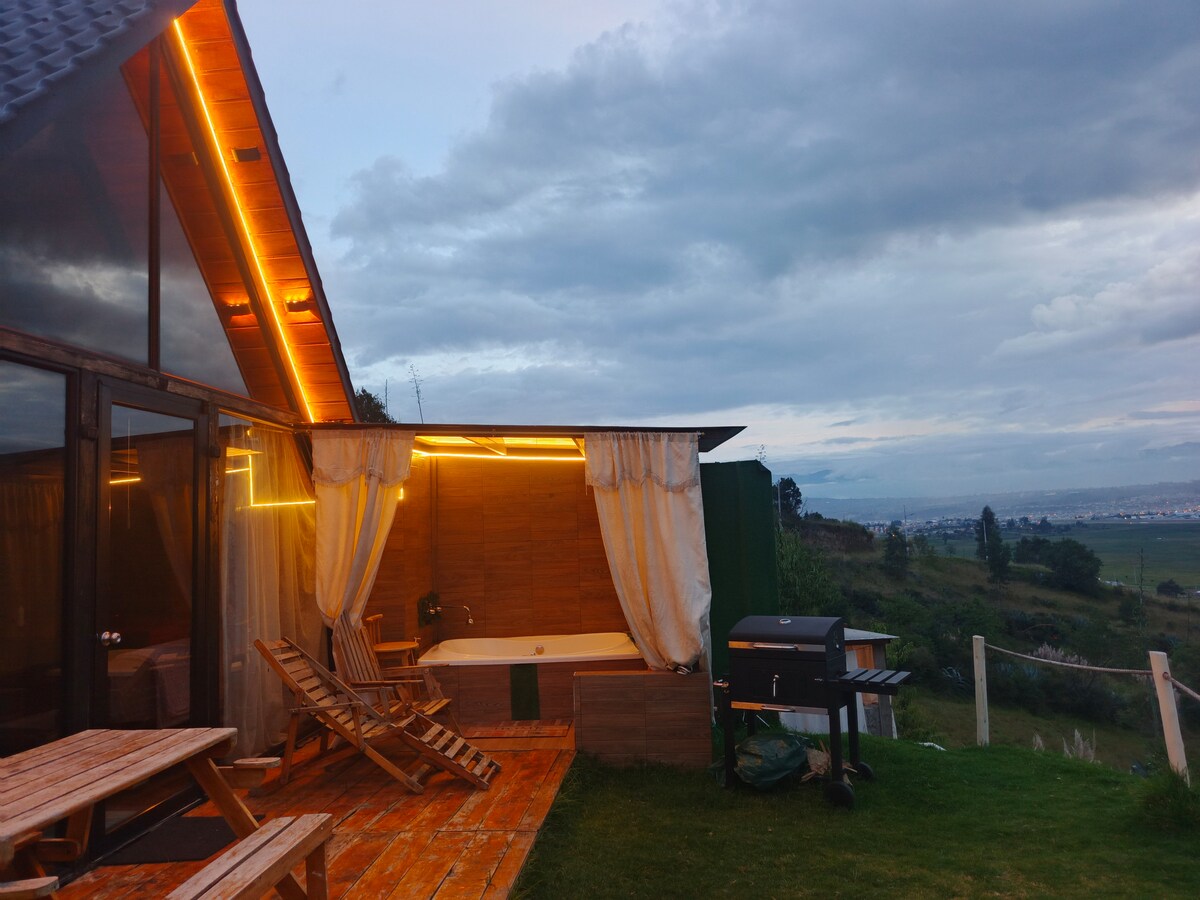 Si buscas relajación, paz y privacidad . En Alpina Glamping vive una estadía junto a la naturaleza, caballos , vista a volcanes , montañas y todo el confort que necesitas para pasar momentos aislados del estrés y la ciudad. AlpinaGlamping se encuentra a 10 minutos de la ciudad (no dentro de la ciudad) zona campestre de fácil acceso (vía asfaltada) llegada en taxi, bus o carro. Área BBQ y fogata está bajando unas pequeñas gradas. tercera edad o problemas médicos se dificultarán bajar al área.