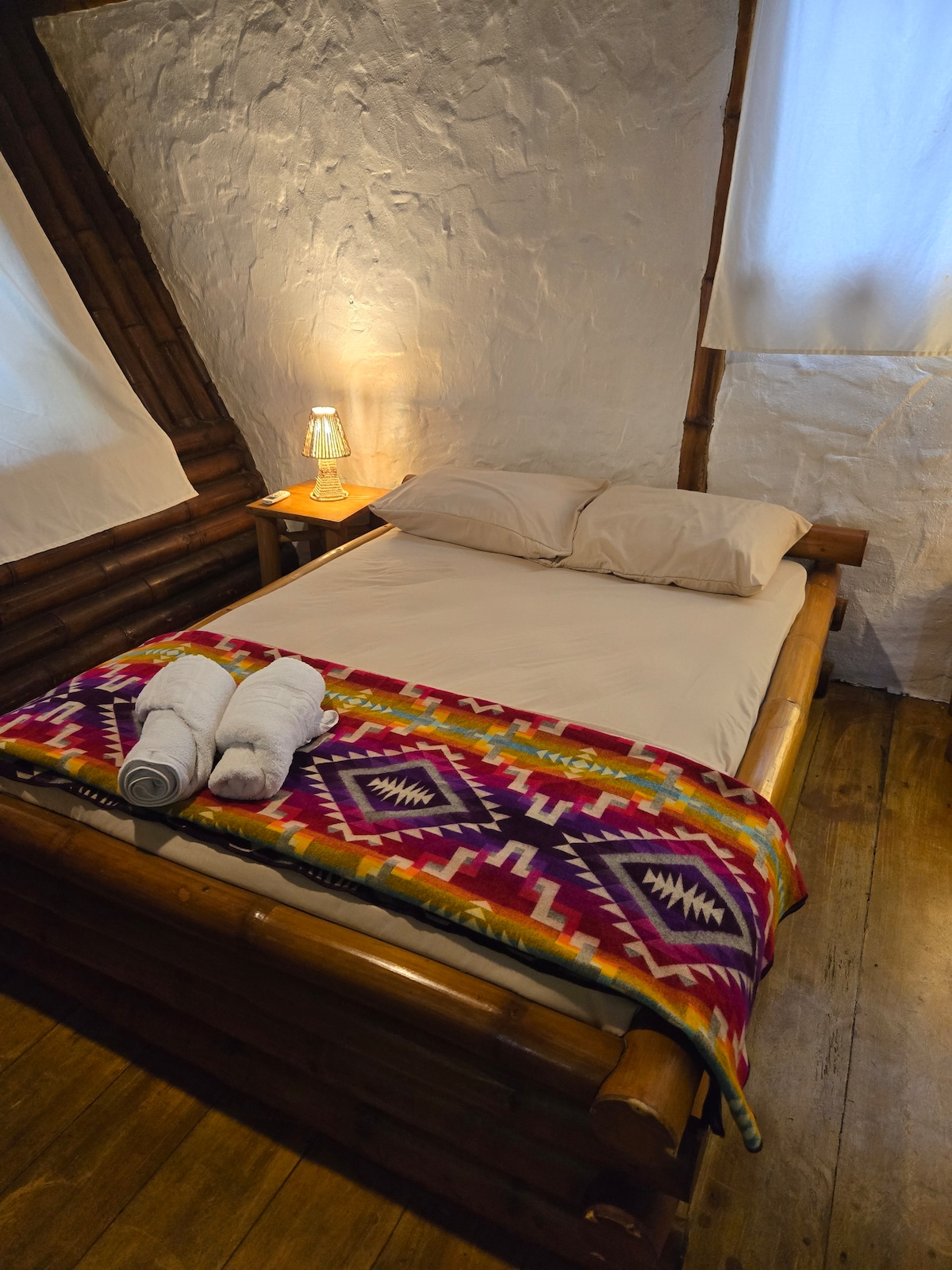 Located in the heart of Baños, our exclusive Japandi-style luxury suite offers the ultimate comfort. Relax in the jacuzzi with a 32" TV or enjoy a unique experience in the king-size bed with a 60" TV. An elegant and cozy space, perfect for romantic getaways, just minutes from the city's main attractions and restaurants. Experience luxury and tranquility in the best destination!