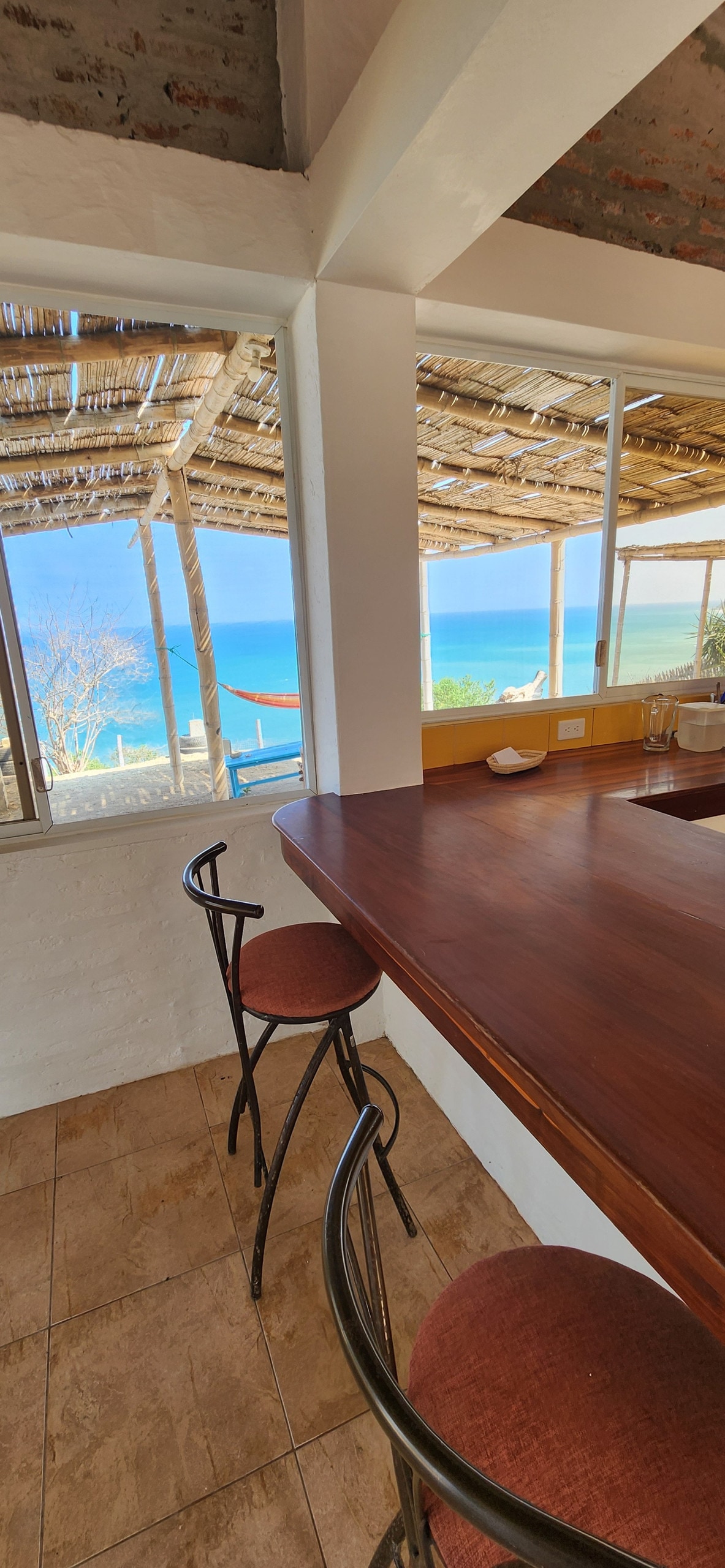 This tranquil air conditioned apartment is on the beach with kitchen and office, and generator backup for power and WiFi, perfect for digital nomads. The second floor is an open air area with bbq, tables, chairs, hammocks and a beautiful view of the ocean. Third floor balcony for sunbathing. Gated property with secure parking, a fire pit next to the apartment and one more on the beach. 5 minute walk to the restaurants of Manglaralto and 15 minute walk on the beach to the nightlife of Montanita