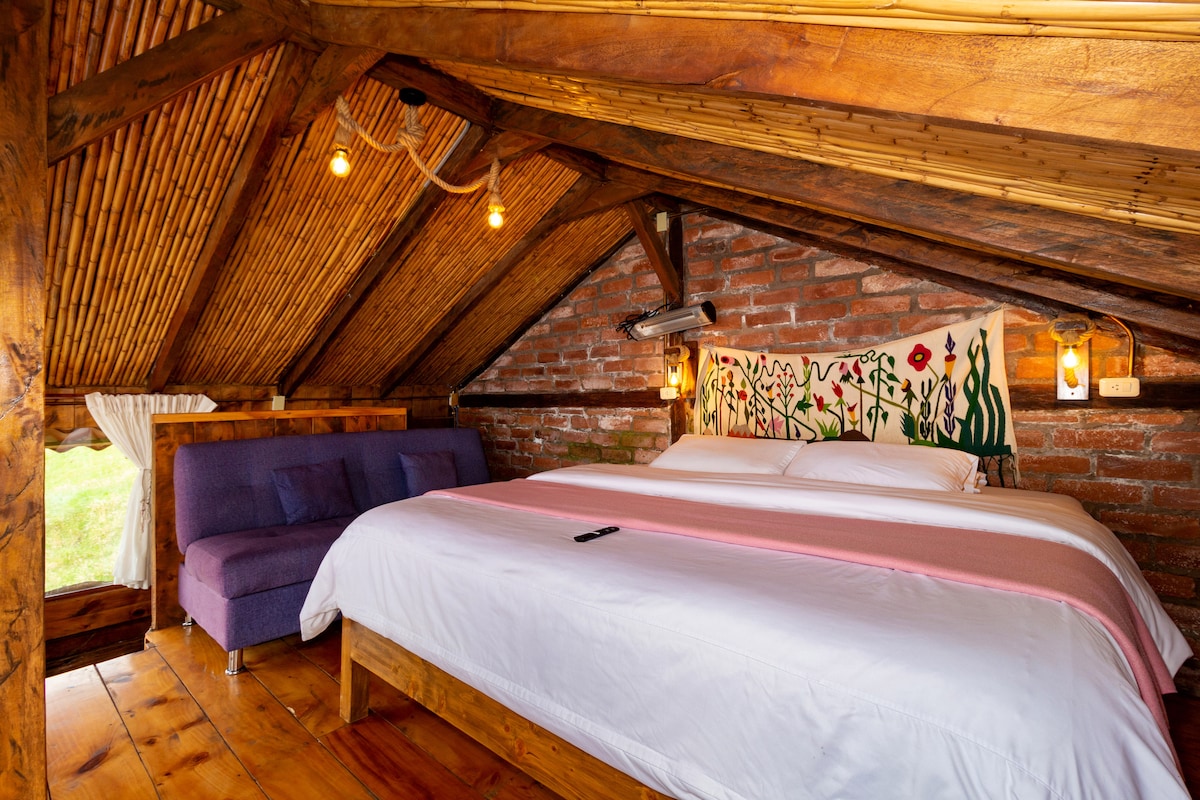 *Hermosa cabaña rústica de dos pisos. ( Primer piso: una cama de 2 plazas y un cama de 1 plaza, Segundo Piso: dos camas de 1 1/2 plazas y una cama de 1 plaza). ideal para 6 adultos y un niño. * Somos Pet Friendly. *Rodeado de flora y fauna. *Junto a la área húmeda. * Tarifa incluye: El uso de instalaciones; Piscina para adultos, piscina para niños, sauna, turco, hidromasaje, parqueadero privado y el desayuno del día siguiente incluido en la Hostería Flor de Canela.