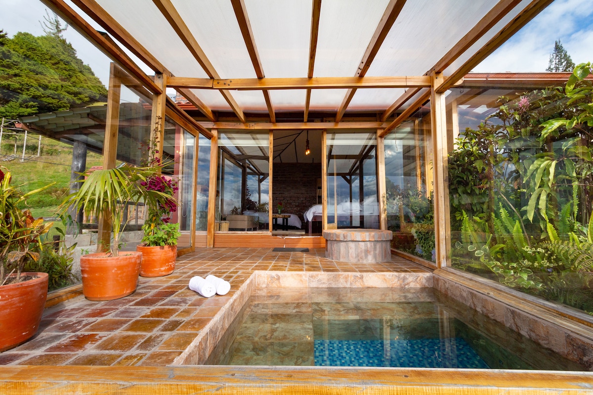Welcome to Cariacu! Our visitors love its tiny pool. Just 40 minutes from Baños de Agua Santa and 20 minutes from downtown Patate, it's perfect for groups of up to 5 people, wether you´re on vacations or for work. This room boasts with private entrance and full privacy. Fast wifi and free parking are included, and we offer laundry service and an on-site restaurant for an extra charge.