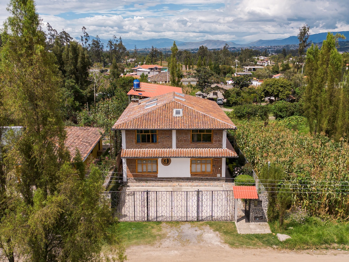 Welcome to Watzara Wasi! We offer family accommodation 2km from Cotacachi, perfect for families with pets (2 max )and nature lovers. Enjoy views of the Imbabura Volcano. We also offer you the option of monthly stays (30 days). We have office space with 80 MBPS speed Wi-Fi suitable for teleworking. It has a living room, dining room and fully equipped kitchen, including a refrigerator. We are waiting for you, so that you can experience the wonder of Imbabura