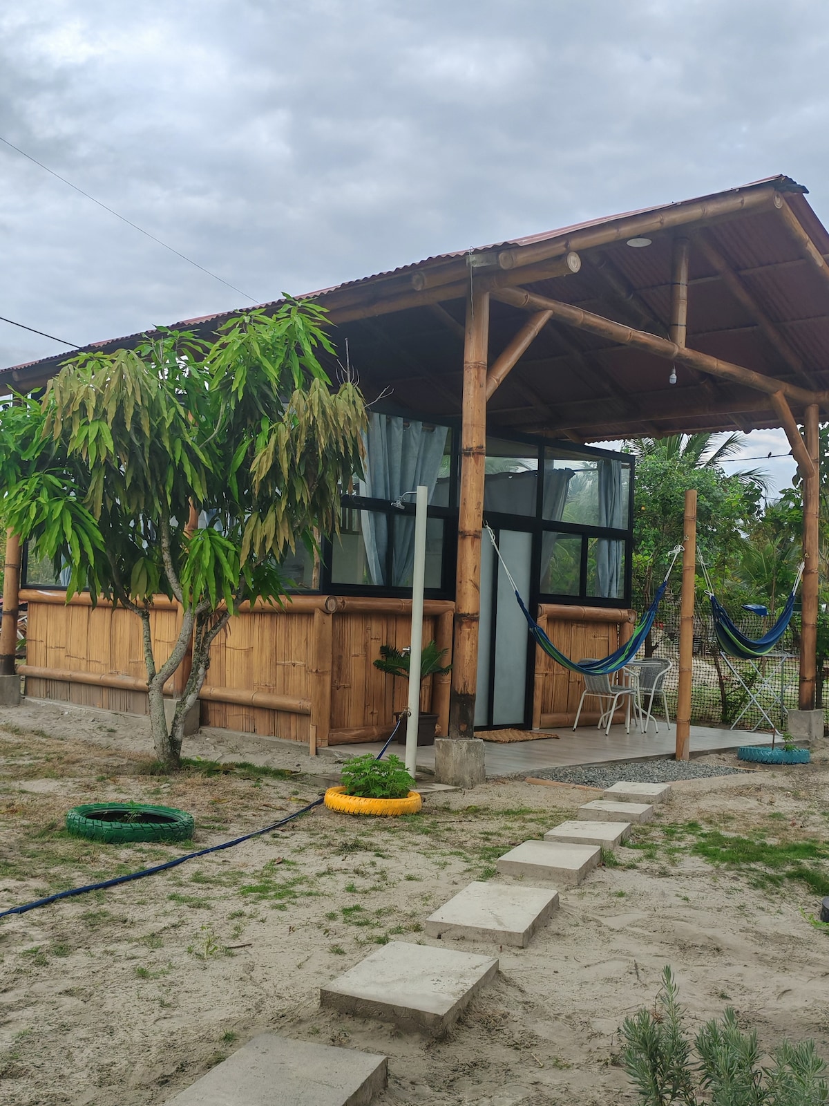 Welcome to the Ecuadorian dream: a safe beach paradise full of nature, perfect waves for surfing, great vibes and a friendly community. La Isla Bonita is located facing the sea at Isla Portete (in front of Decamerón Mompiche), just 6 hours by car from Quito. It has beautiful palm trees, 5G wi-fi, board games, an inflatable boat, a campfire place, an outdoor bathroom and shower, and many more surprises. Discover the good vibes on La Isla Bonita!