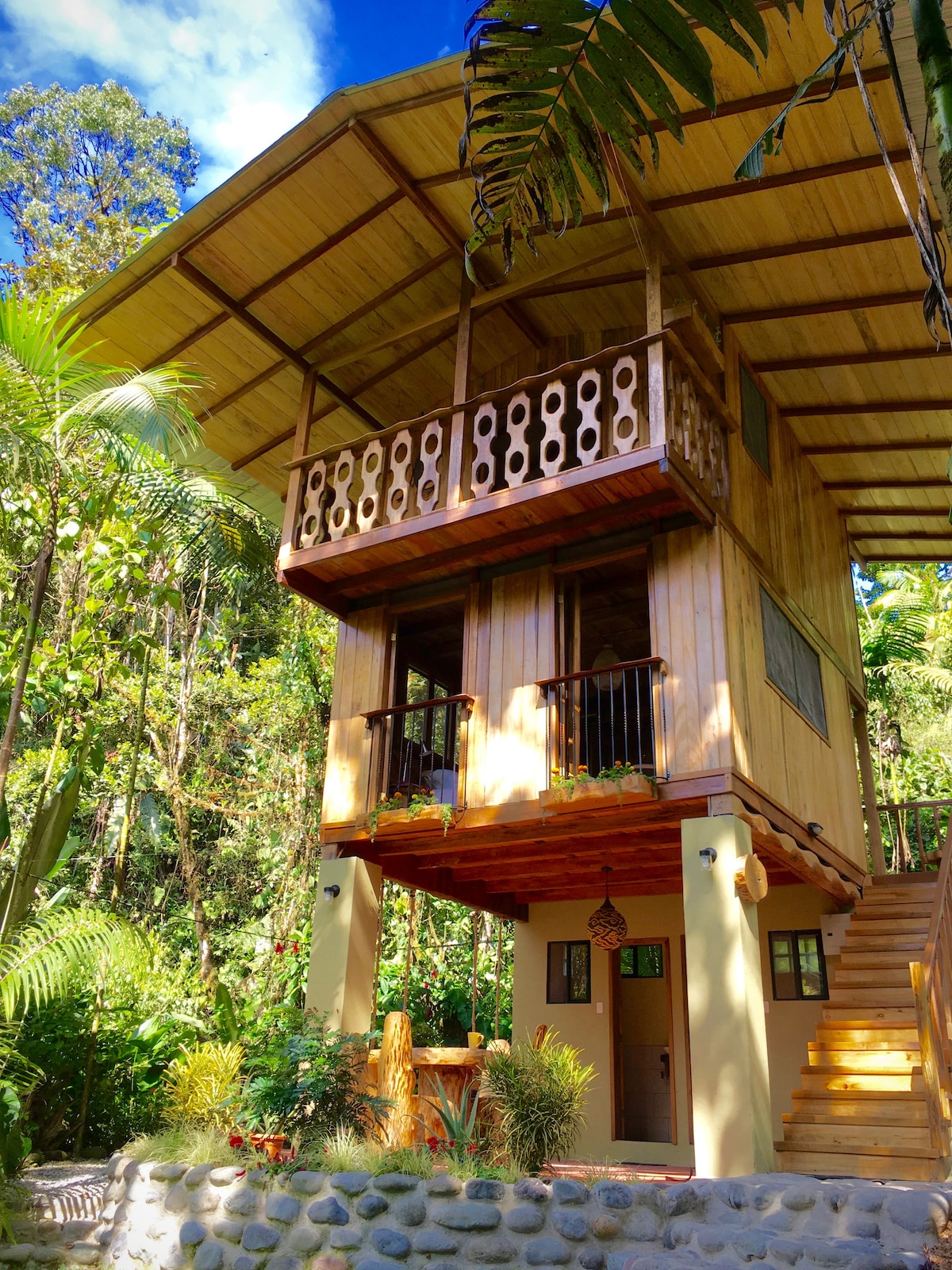 Enjoy a special CloudForest experience in style and comfort with fast WiFi, perfect for digital nomads. The “Orchid" is a masterly crafted 3 story cabin with lux furnishings, organic linens & amazing views of the Forest. We’re 2 miles to the village of Mindo, but far enough out to have perfect serenity in Nature. Clear & delicious, our water comes from a spring! Hire our guide for inspiring hikes on our exceptional, private trails. Join us for a yoga class with an expert teacher.