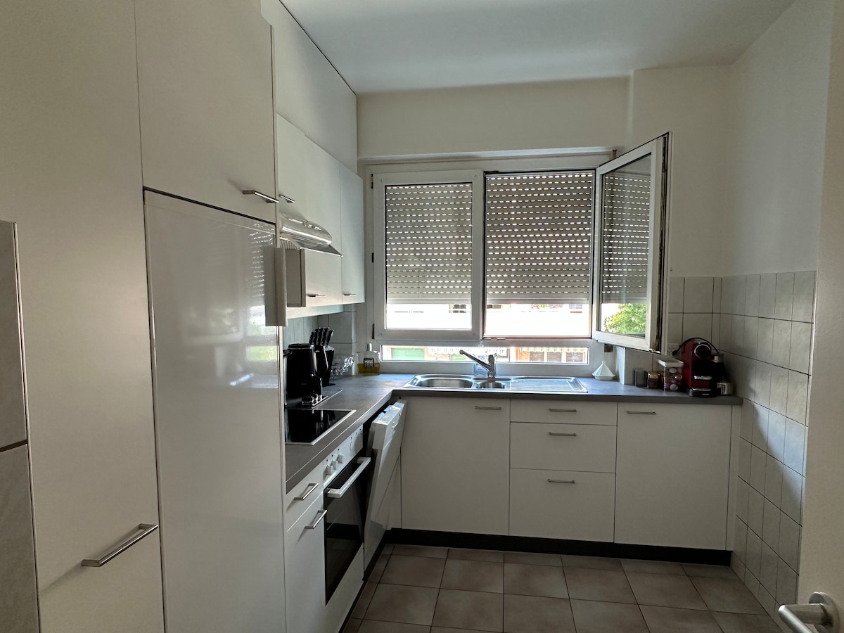 Enjoy a stylish experience at this centrally-located place very close to the station. You will appreciate its proximity to the lake and the city center. The apartment is located in a very quiet street, close to grocery stores, the new museum plaza, cafes and restaurants. It features a large living room, an open and fully equipped kitchen, 2 bathrooms, 2 bedrooms (1 with double bed and one child room) and a balcony. You can also use the outdoor parking space and the garden.