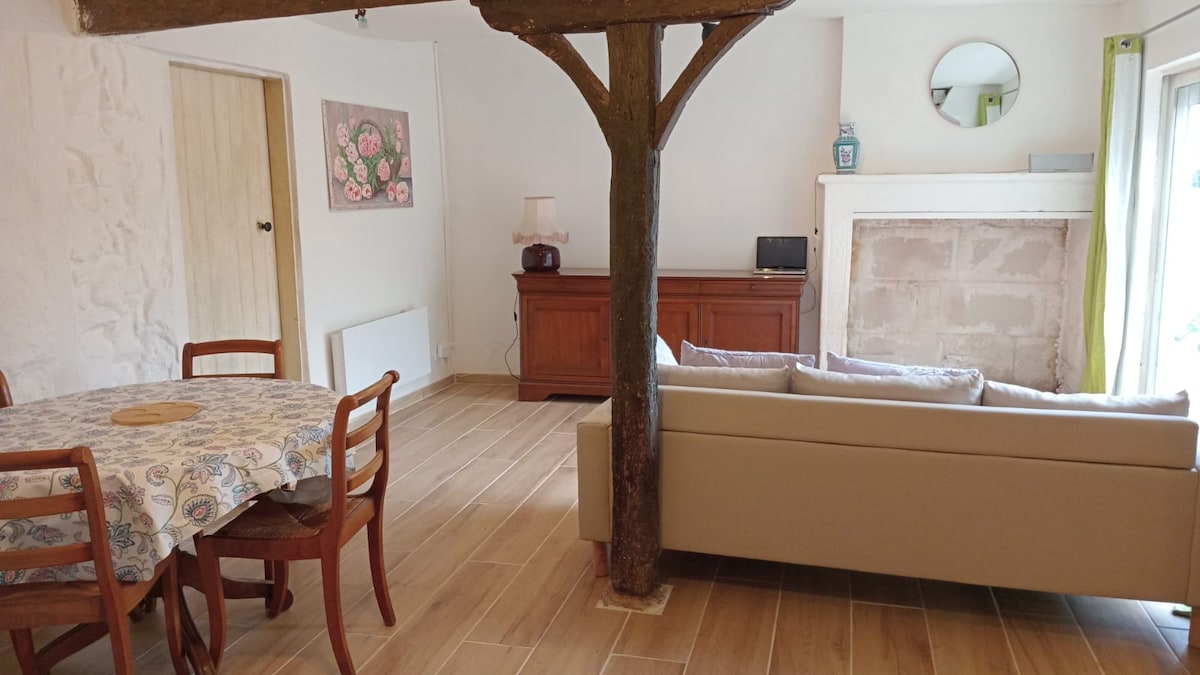 Détendez-vous dans ce logement calme et élégant de 30m2 refait à neuf dans une magnifique bâtisse datant des années 1820. À 14km du Zoo de Beauval et à quelques pas de toutes commodités vous pourrez profiter du calme dans le jardin ou bien de la fraîcheur de la cave. Vous aurez à votre disposition le linge de maison nécessaire, une Senseo, une bouilloire, un micro-ondes, une télévision équipée d'un chromecast et un barbecue. Mini bar et quelques gourmandises en supplément au cas où 😉