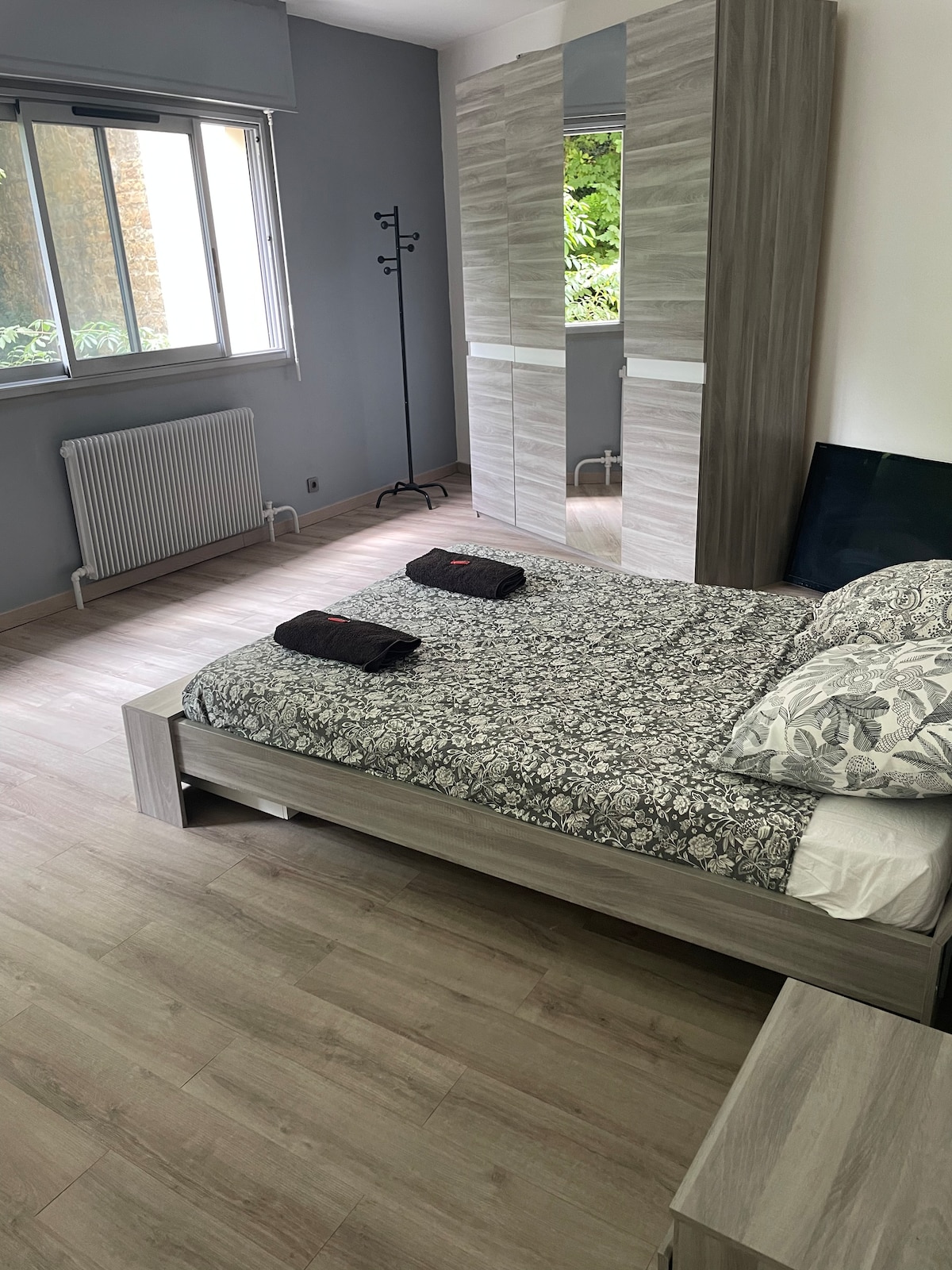 Offrez-vous une parenthèse enchantée dans ce studio haut de gamme dans un jardin arboré. Idéal pour une escapade romantique ou un séjour professionnel de plusieurs jours, cet espace allie confort, élégance et atmosphère cosy pour une expérience inoubliable. Lit qualité hôtelière . Cuisine équipée. *Piscine partagée . *Wi-Fi *Salle de bain élégante douche à l’italienne. *Parking privé gratuit , sécurisé , clôturé *Draps inclus lit fait à l’arrivée *Serviettes incluses *Torchon