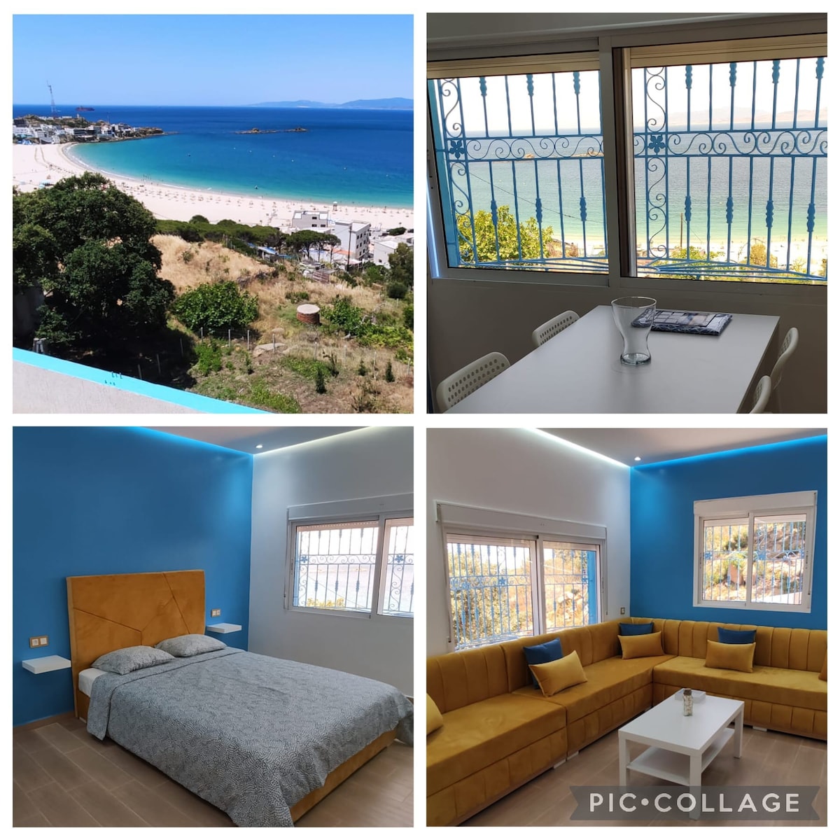 Situé au village de pêche/plage Dalia, logement paisible/unique offrant un séjour détente en bord de mer méditerranée pour toute la famille, avec vue panoramique sur Dalia Beach, Dalia bay, petit port, phare Pointe de Cire, rochers Ras Louardyane, détroit de Gibraltar, Espagne. La mythique plage Dalia avec ses eaux claires turquoise et ses sables blancs est accessible à pied. Vacances inoubliables et point de départ pour découvrir la côte méd Maroc, ses beautés et ses villes/villages (Tanger...