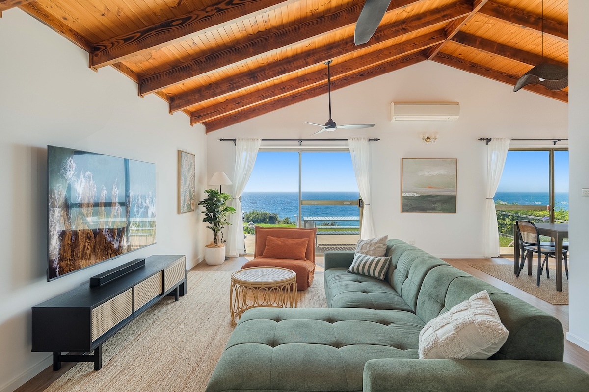 This is a description of a beautiful apartment that is spacious, well-lit and airy. It boasts an awe-inspiring ocean view that can be enjoyed through a wall of windows. The apartment is situated in a peaceful street, providing a tranquil environment. A private, fully-equipped apartment with stunning ocean views - in a quiet location. A short drive or walk to the beach and popular swimming spot at Kianiny Bay. It has direct access to the coastal reserve, as well as an amazing clifftop walk.