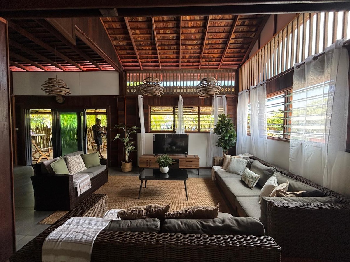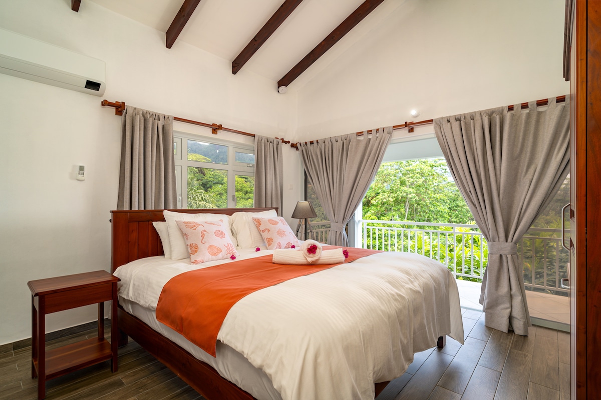 宽敞、宁静的度假胜地,拥有宽阔的海景,非常适合家庭或小团体入住。 享受日落阳台作为您的户外生活空间,享受宁静和隐私。 别墅配备全套自炊设施,前往海岸很方便。 我们安排汽车租赁、接送和前往普拉兰岛(Praslin)和拉迪格岛(La Digue)的团体短途旅行。 为了让您晚上放松身心,我们准备了新鲜的食物,您可以在方便的时候加热。