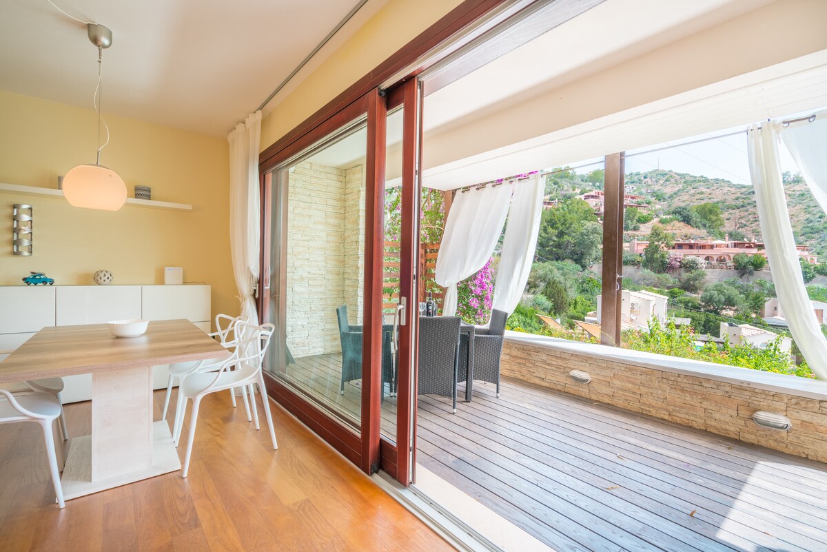 Bilocale con terrazza panoramica sul mare, nella quiete della macchia mediterranea sarda. L'appartamento è il primo ed ultimo piano di una graziosa villetta in zona Eden Rock, a 5 minuti in macchina dalle meravigliose e rinomate spiagge del Sud Sardegna. Il nostro punto forte è l'ampia veranda all'aperto in cui potrete godervi il panorama, mangiare e bere in un'atmosfera incantevole di giorno e di notte, quando potrete ammirare un cielo stellato da sogno e la luna che sorge sul mare. IUN Q9393