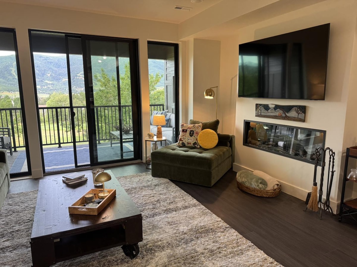 Enjoy your own private hot tub. This 1 bedroom condo in Eden, Utah, located right on the 10th hole of Wolf Creek Golf Course & minutes from 3 ski resorts. Perfect for 2 guests, but can accommodate 4, this retreat features a warm living area with a gas fireplace, a Smart TV, and stunning mountain views. The fully stocked kitchen has everything you need, while the bedroom with a king bed offers restful comfort. Enjoy the private patio with a 3 seater hot tub & outdoor seating & fire pit.